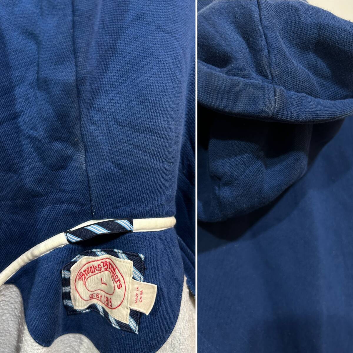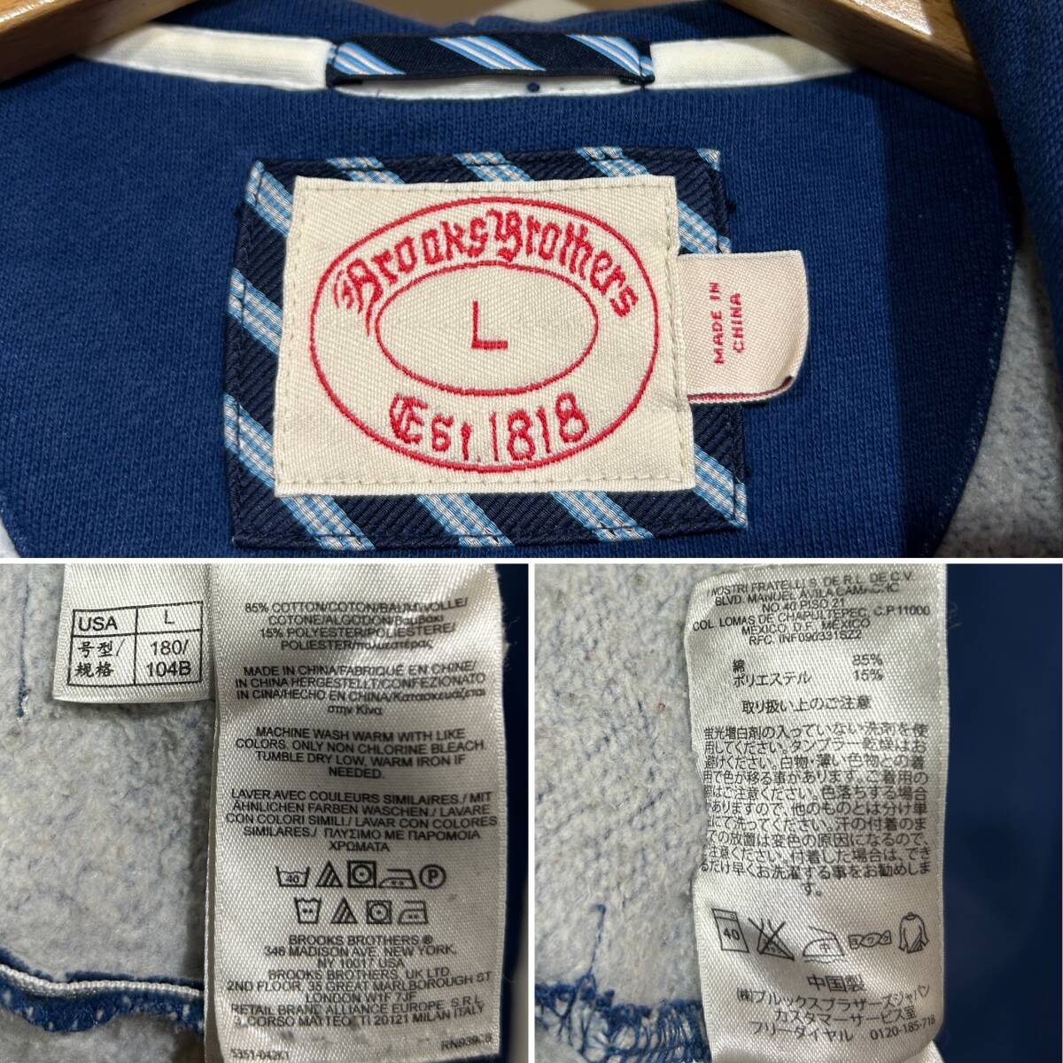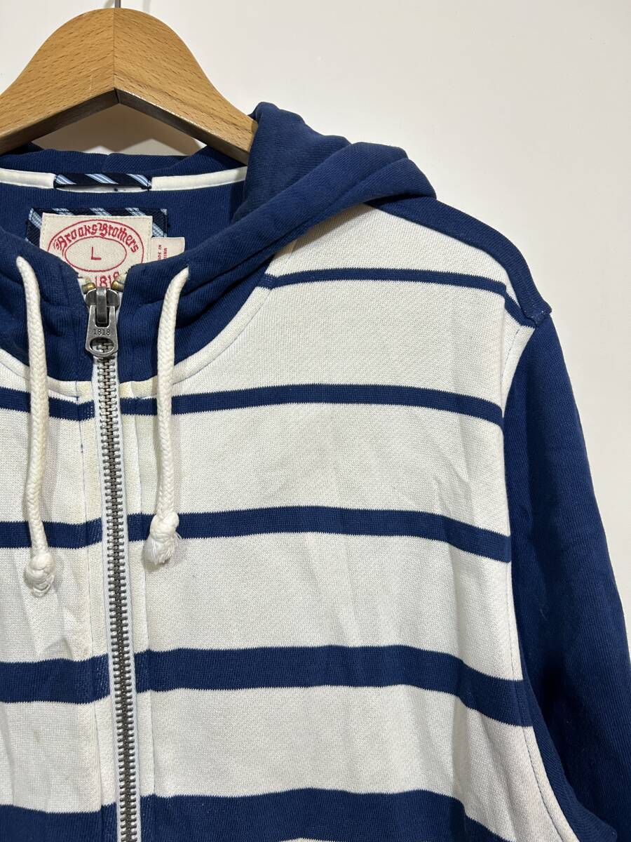 ★ Brooks Brothers スウェット フルジップ パーカー ネイビー ブルー ボーダー切替 ジップアップ L ビッグシルエット ジップポケット