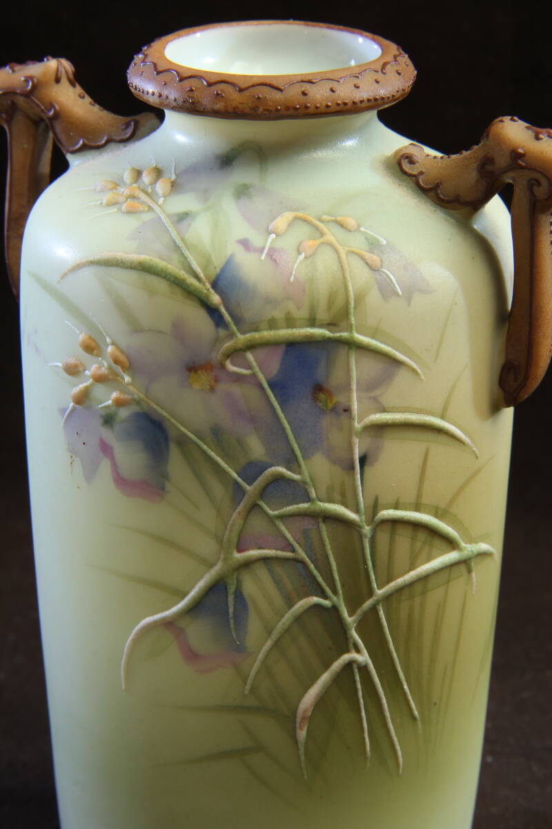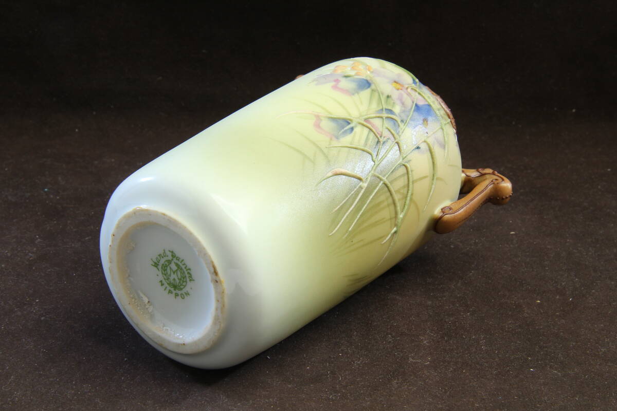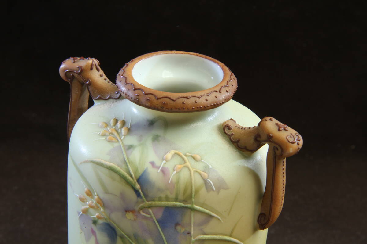 3936 オールドノリタケ ハンドル付フラワーベース 稲穂盛上げ花文花瓶  M-NIPPON 明治 盛り上げ技法