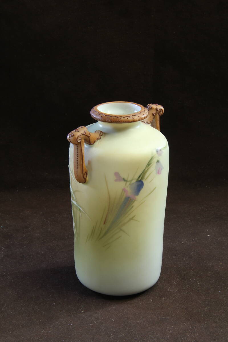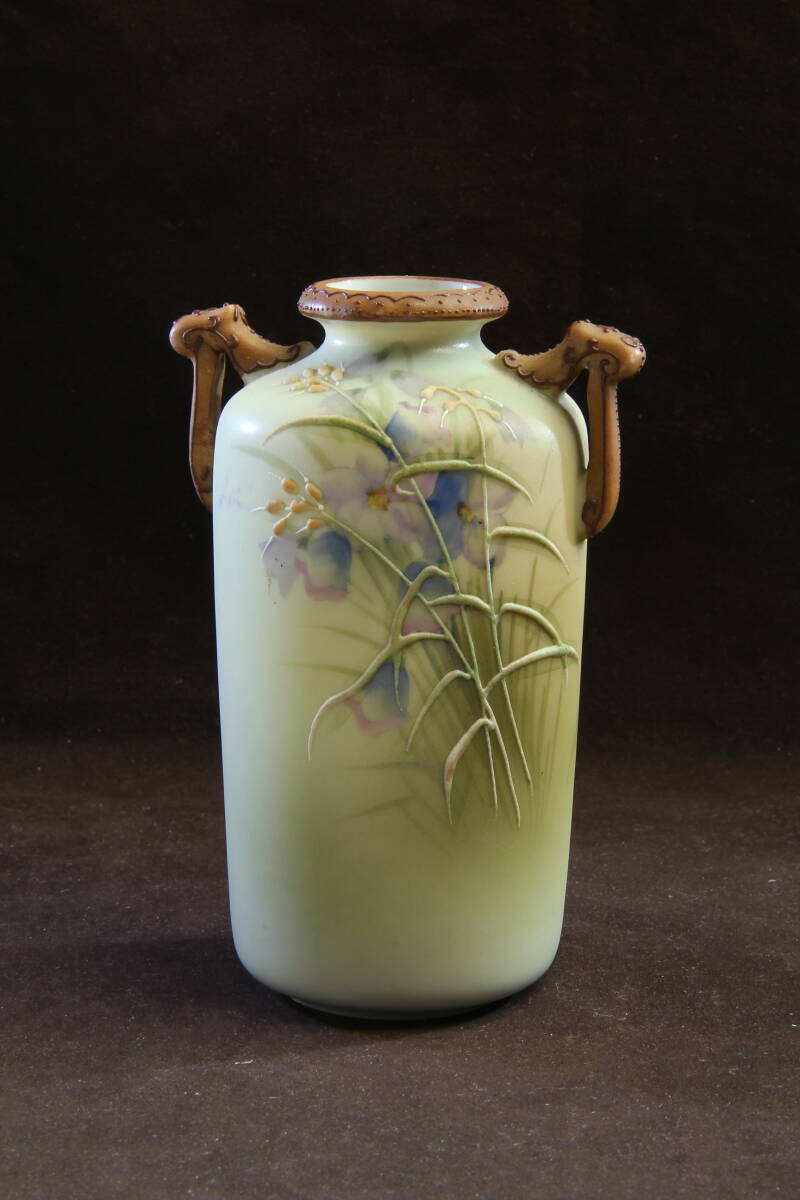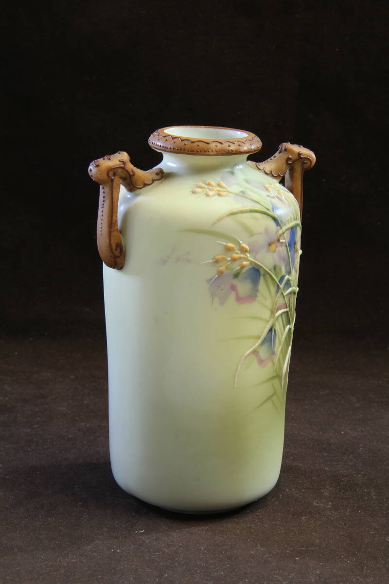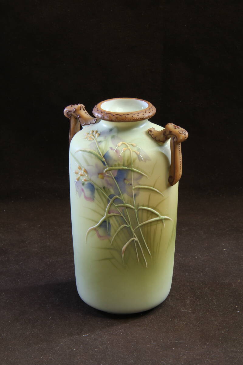 3936 オールドノリタケ ハンドル付フラワーベース 稲穂盛上げ花文花瓶  M-NIPPON 明治 盛り上げ技法