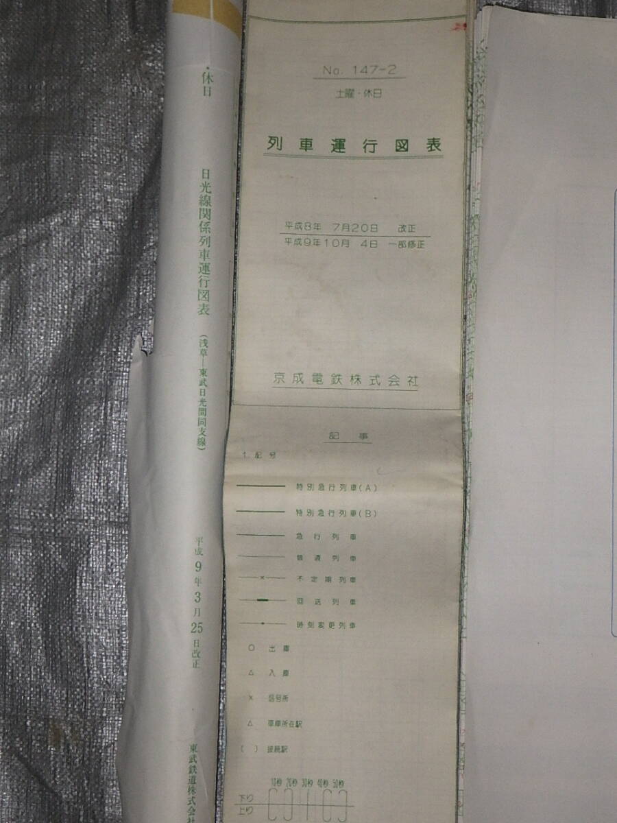 東武日光線 京成線 京急線 古い列車運行図表 長期保管品