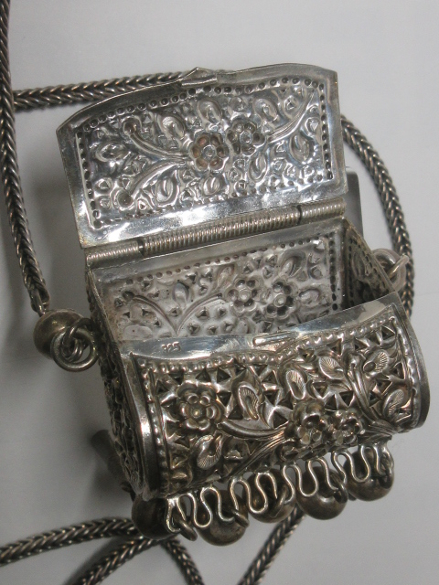 ★「緻密細工の純銀首飾り「タイ・山岳民族のポーチ型ネックレス」★スターリングシルバー925製★骨董/レア/ビンテージ/アンティーク★