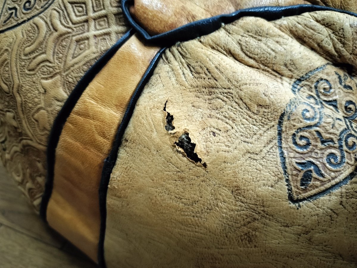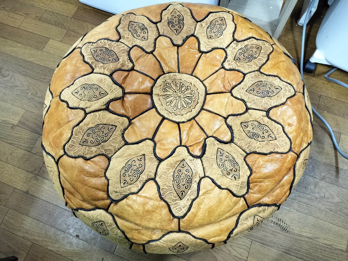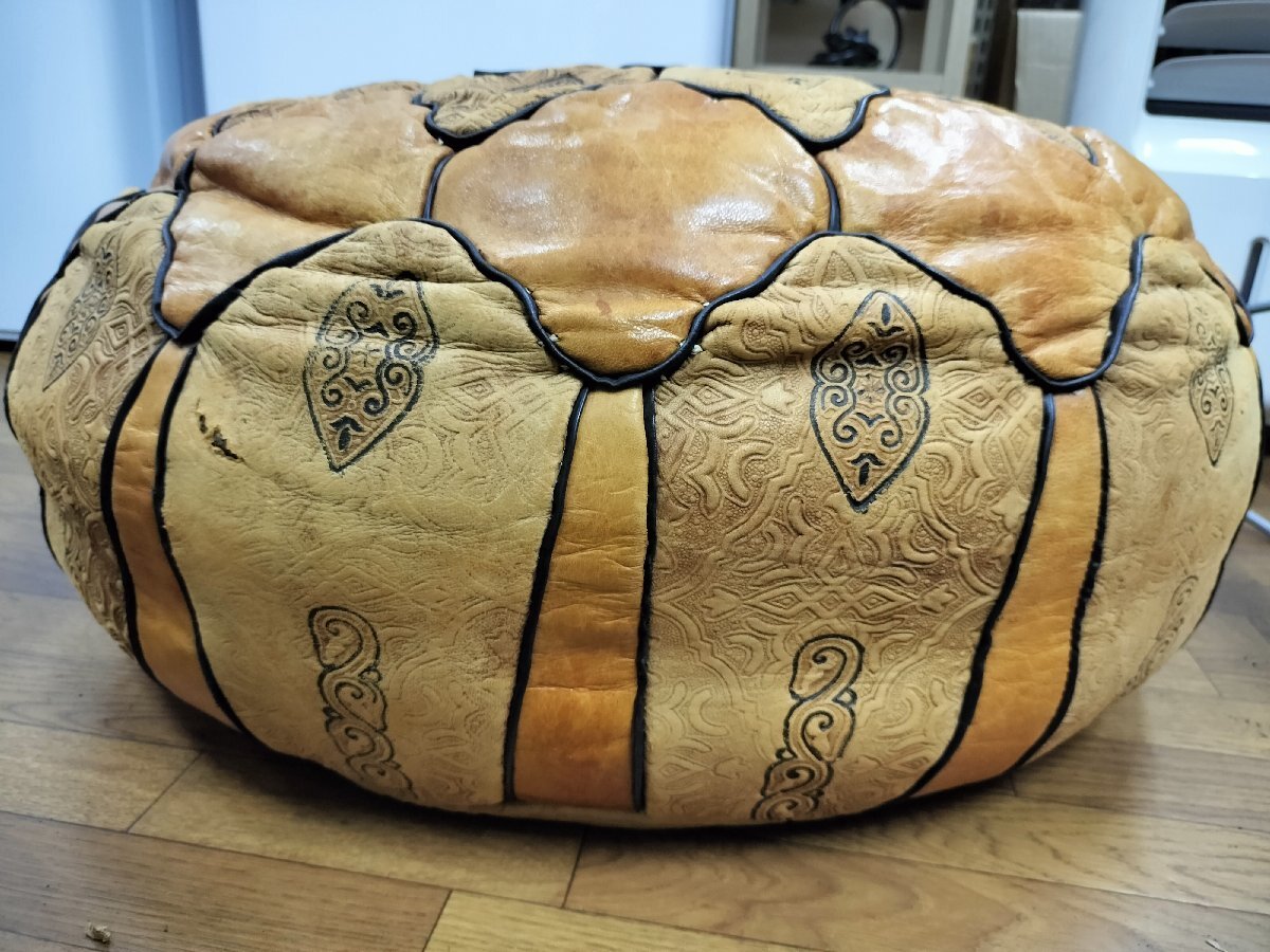 ★モロッコ製 アンティーク クッション オットマン 革/レザー★