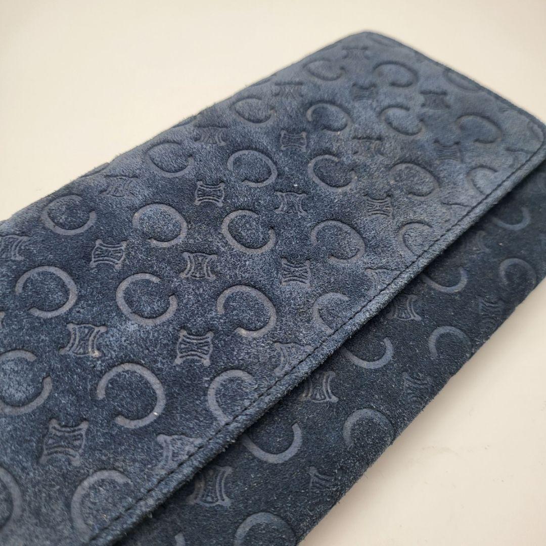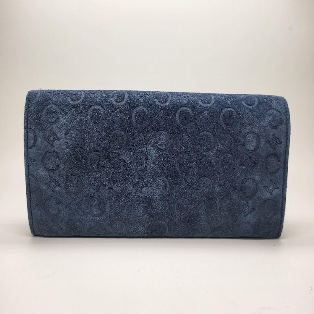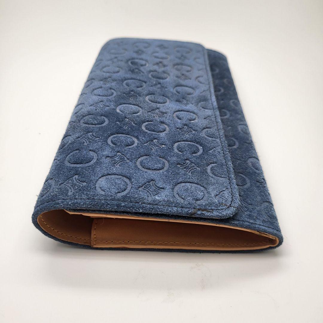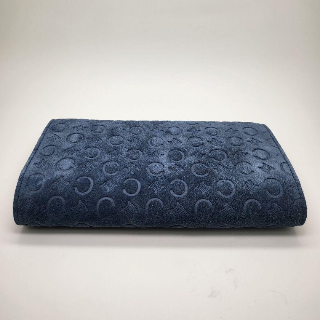 外側はブランドを象徴するトリオンフ柄を型押ししたブルー系スエード素材を使用し、内側は上質なベージュ系レザーで仕上げられた高級感あるデザイン。