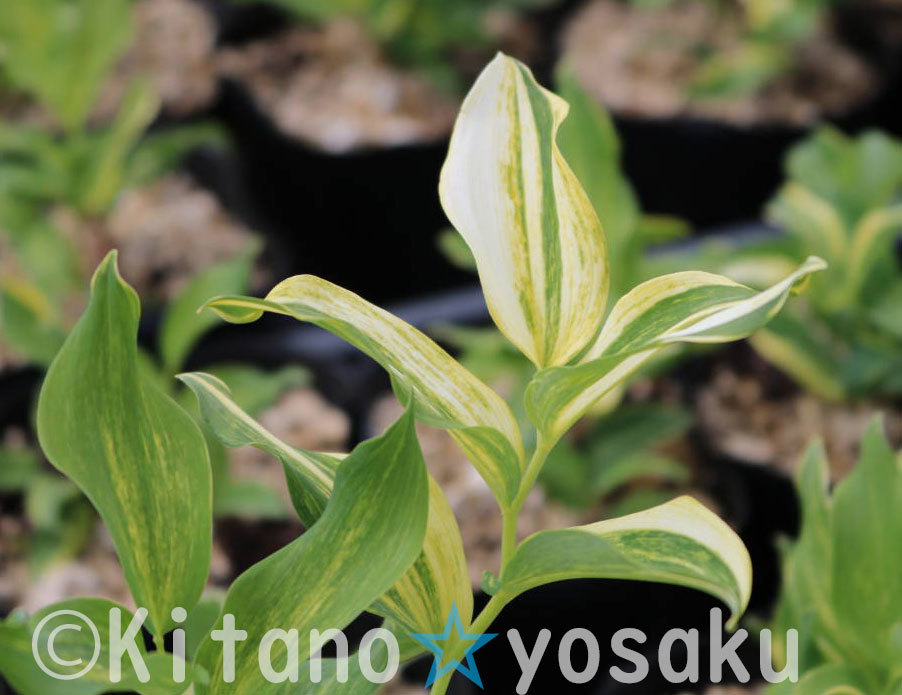 斑入り甘野老・大黄河(フイリ・アマドコロ/ダイコウガ)キジカクシ科 3.0寸(9.0cm)ポリポット栽培