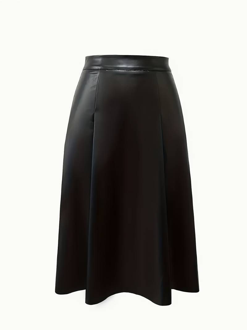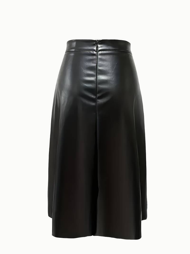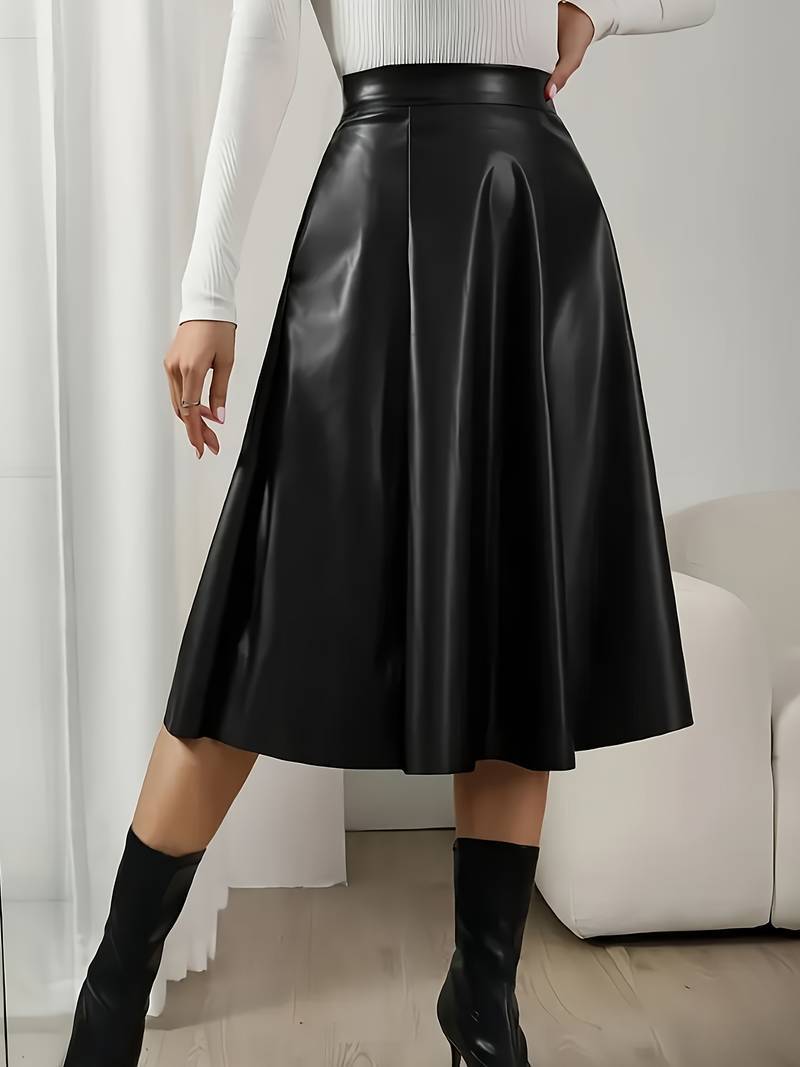 フェイクレザー ハイウエスト ミディスカート ブラック