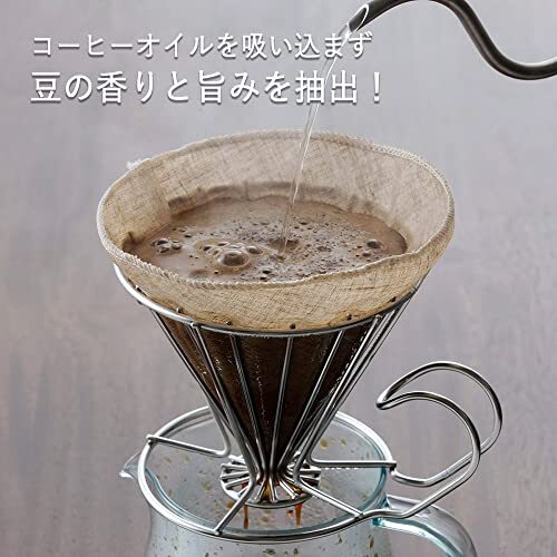 天然素材の麻を使用したコーヒーフィルター ペーパーフィルターと比べてコーヒーオイルを吸い込まないので、香りと旨みもしっかり抽出 水洗いでくり返し使える ※約50回を目安に使用可能。使用する豆や量により変わります