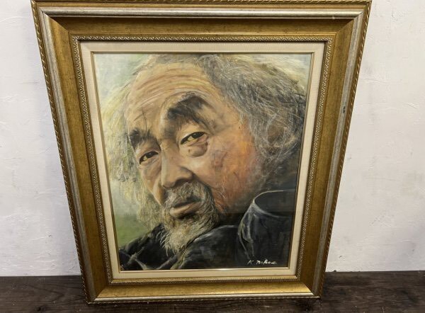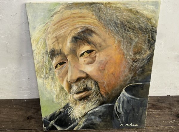 真作!K.nakae 中江和修 『老人』 F15 油彩 直筆サイン入り 画寸約53×66cm 油彩画 人物画 絵画