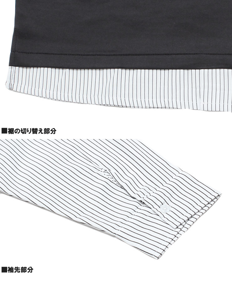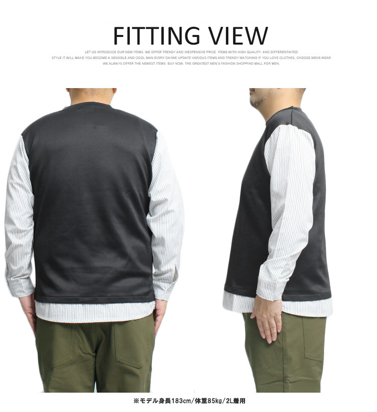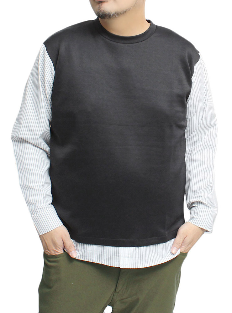 | 商品名 | 【新品】 5L ブラック 長袖 Tシャツ メンズ 大きいサイズ 切替 ストライプシャツ コンビ クルーネック カットソー |