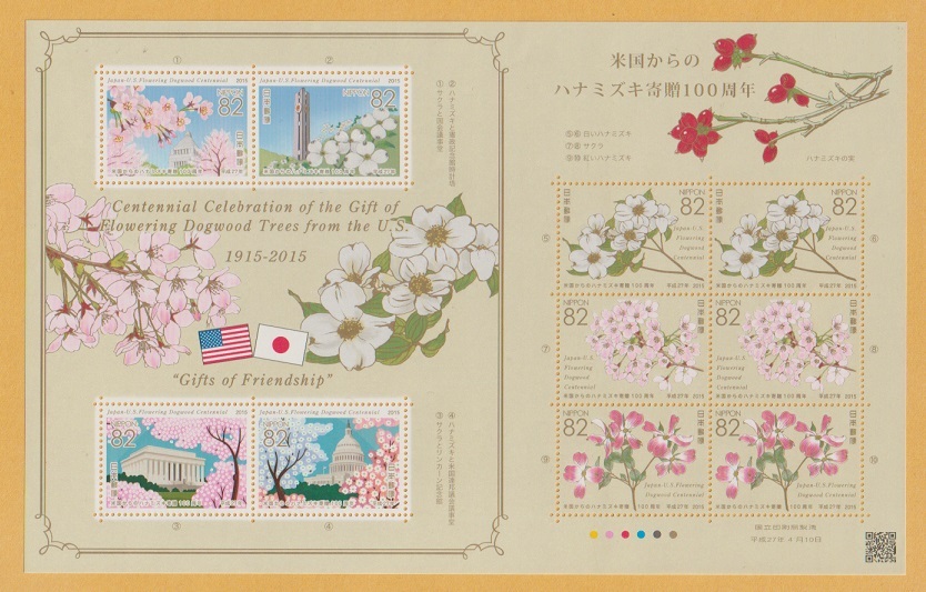 【記念切手】 米国からのハナミズキ寄贈100周年《82円》 切手シート