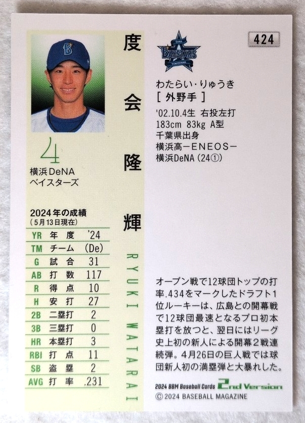 ★銀箔サイン★ 度会隆輝 横浜DeNAベイスターズ BBM 2nd Ver 2024