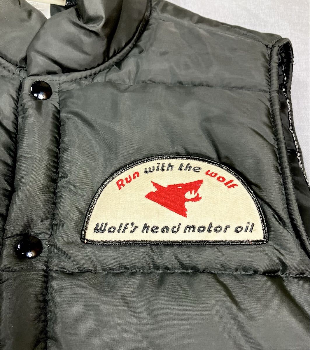 こちらは ビンテージ ウルフズヘッド オイル ダウン ベスト になります。