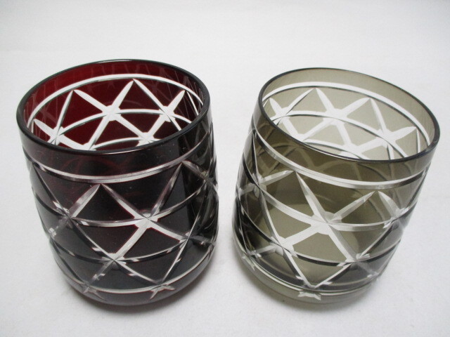 ジバンシー 切子 ロックグラス 籠目 2色 2個 グラス フリーグラス アウトレット品