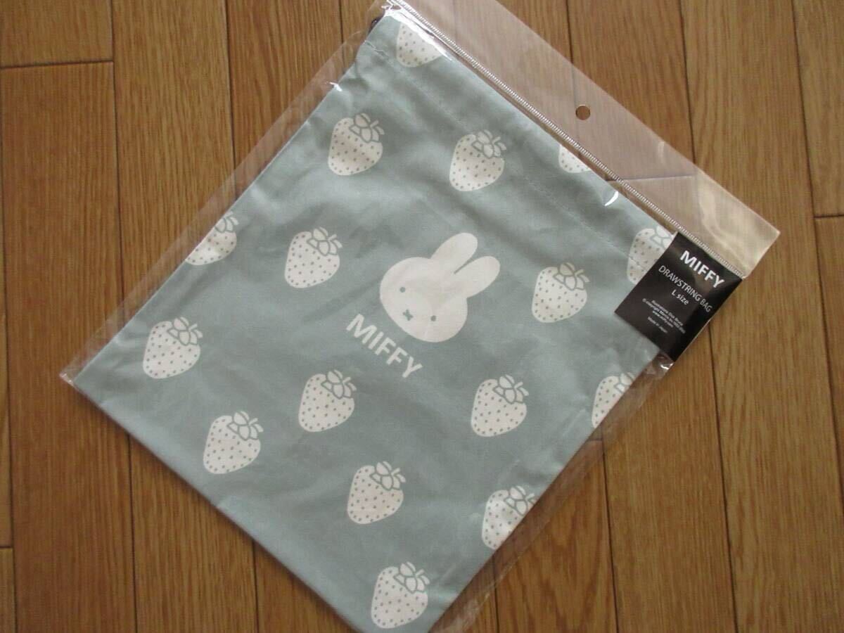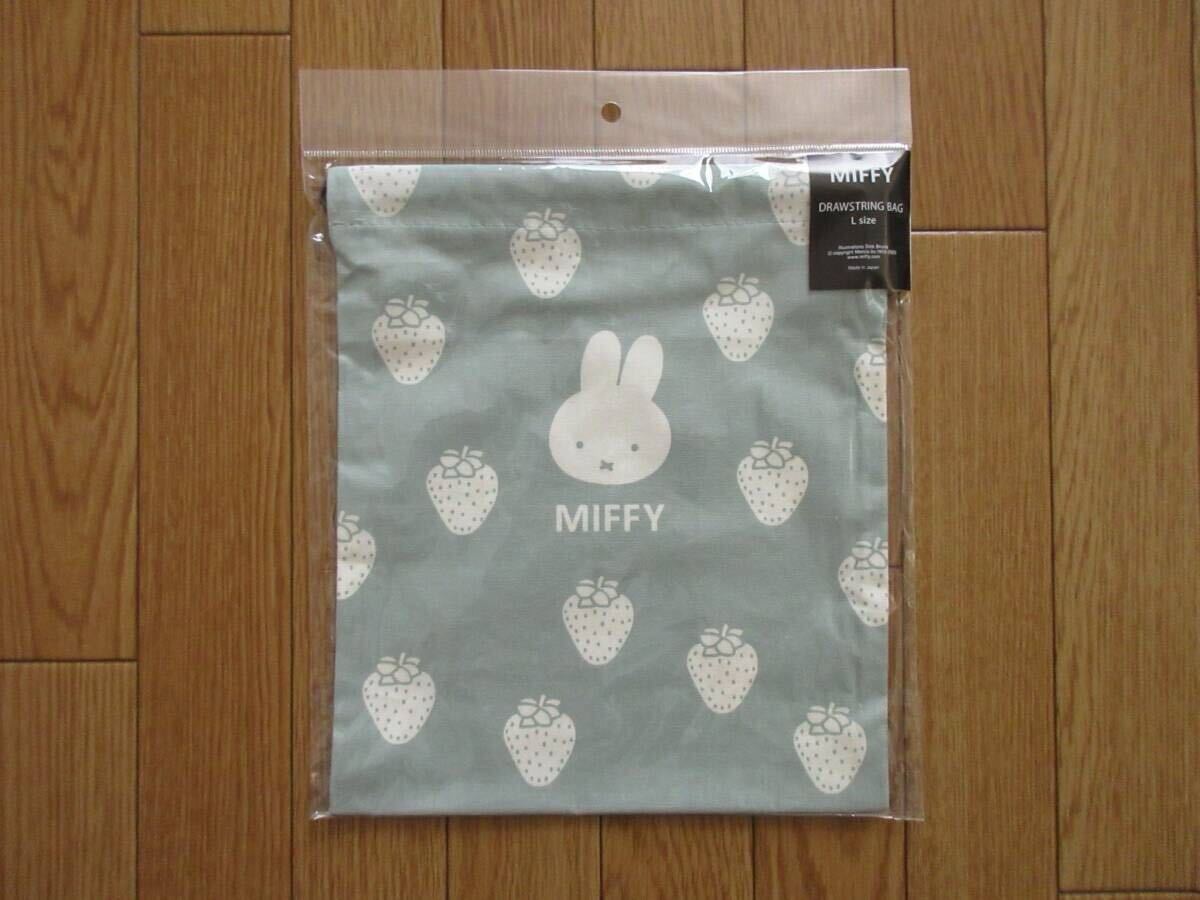 miffy ミッフィー 巾着 L (いちご グリーン) 巾着袋 小物入れ ディック・ブルーナ うさぎ 苺
