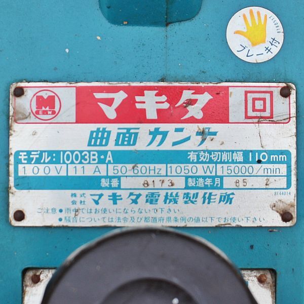 ご覧頂き誠にありがとうございます。 新潟県三条市から、 マキタ 曲面カンナ 1003B-A を出品致します。 ◆100V 50-60Hz ◆有効切削幅110mm 電源を入れて刃の回転動作を確認致しました。 実作業による実演での動作は未確認の状態です。 中古特有の使用に伴う傷汚れ、錆が見られます。 出品内容は画像内の物が全てになり、現状引渡しとなります。 ネット上で商品状態を完全に表記することは困難であり、 個人的観点や見落し等により記載漏れが生じてしまう可能性も御座います。 また限られた画像内では正確にご確認いただけない点も御座いますので、 入札をご検討の際には事前の現物確認を是非ともお勧め致します。 即決のご商談や商品確認等のお問い合わせは、 質問欄もしくは下記メールアドレス宛に直接ご連絡下さい。 【 tool_base_sanjo@yahoo.co.jp 】 商品確認/引渡しは定休日(火曜・水曜)以外の 11:00~17:00にお願い致します。 定休日又は営業時間外の取引連絡やご質問への対応はお時間を頂きますので 予めご了承ください。 ------------------------------------------------------------ 住所:新潟県三条市上保内甲793 定休日:火曜・水曜(GW、年末年始など一部例外有り) 営業時間:10:00~18:00 ------------------------------------------------------------ ご希望通りの指定日・時間帯では承れない場合も御座います。 予めご希望日時をご連絡いただきますようお願い致します。 |
