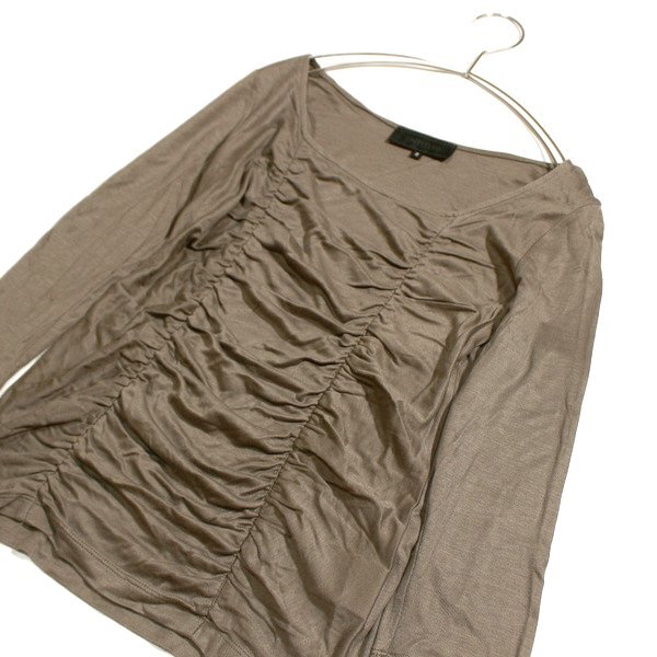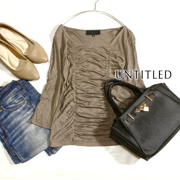美品 UNTITLED アンタイトル 綺麗め ギャザー ストレッチ カットソー 2号 M 春 秋 25C09