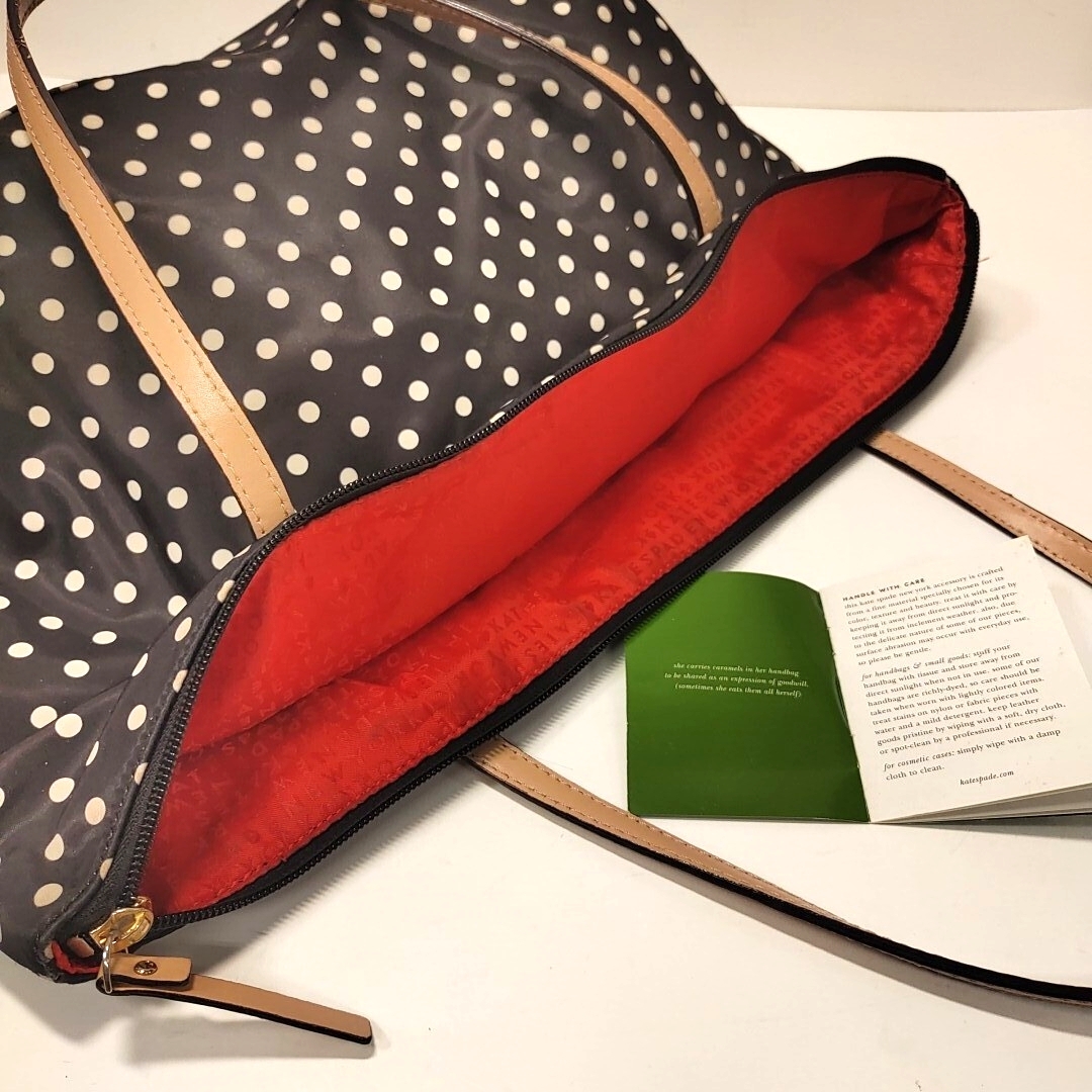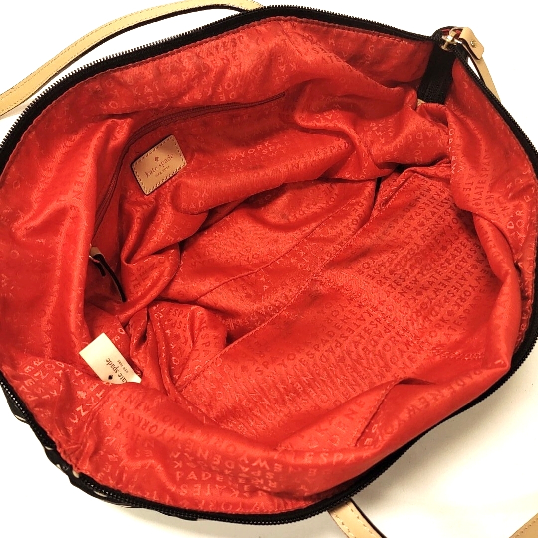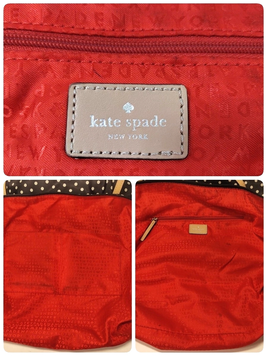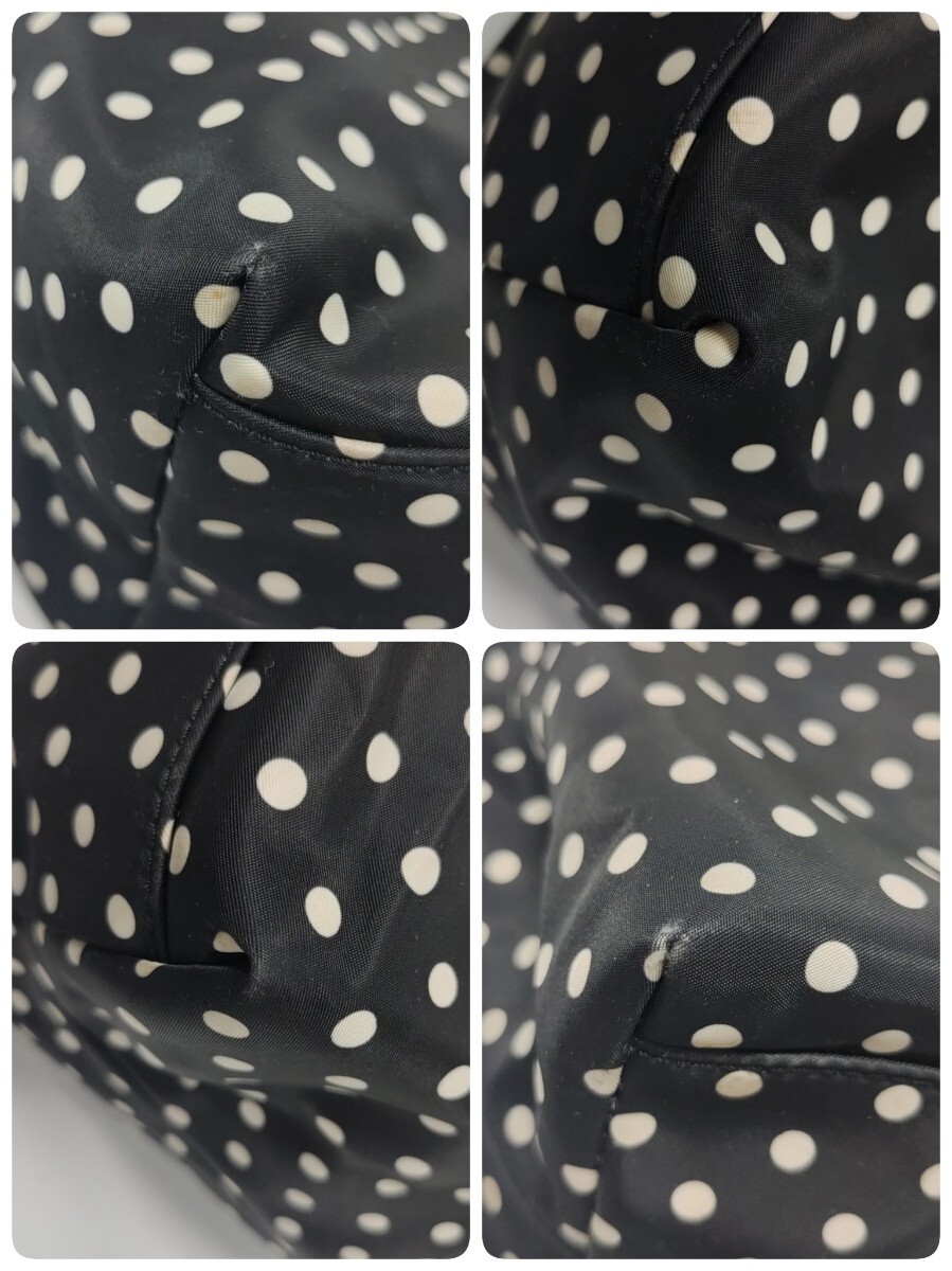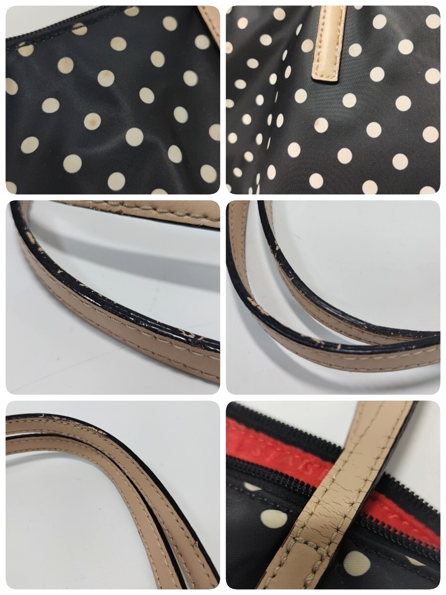 kate spade new york ケイトスペード トートバッグ ドット柄 肩掛け 水玉 ブラック レッド ナイロン×レザー
