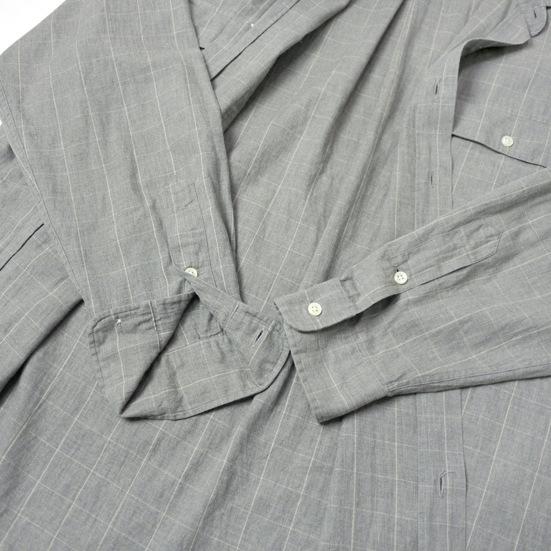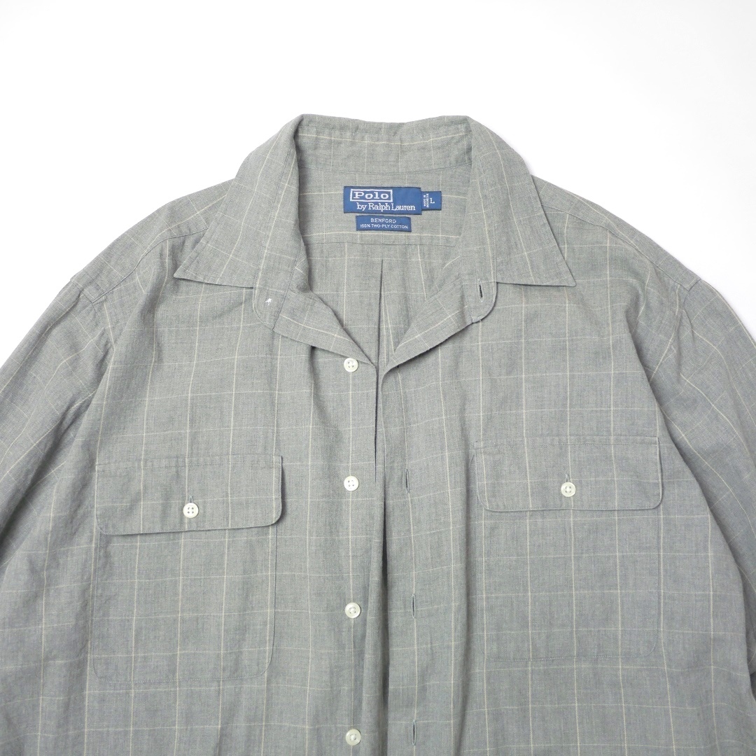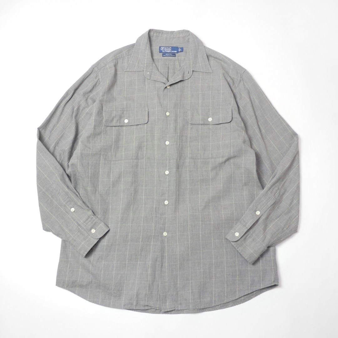■ブランド 90s、POLO RALPH LAUREN、BENFORD ■カラー 灰色(グレー×ベージュ?アイボリー?) ■素材 100% TWO-PLY COTTON ■詳細 アメリカで購入したポロラルフローレンのベンフォード、コットンシャツです。 90年代ごろの旧タグでポニー無し&フラップポケットのタイプになります。 生地はオールコットンのツープライ、それほど厚みのない柔らかな生地でごくわずかに起毛があります。 人気のウィンドウペン/グラフチェック、更にビッグサイズ/オーバーサイズです!! 流行に左右されないシンプルデザインでカラーリングもイイ感じです。 ■状態 多少の使用感はありますが特筆すべきダメージなく全体的に良好です。 ■サイズ 表記 L *下記参考下さい (着用感XL以上、首周りはLくらいの感じです) 前着丈 79cm 後着丈 81cm 肩幅 51cm 身幅 65cm-68cm センタープリーツ入り 胴幅 62cm 裄丈 88cm 脇袖丈 54cm 肩袖丈 63cm ■注意事項 状態は細かく確認しておりますが、傷や汚れの見落とし、実寸誤差、色味差異など生じる場合がございます。 不明な点がありましたら入札前にご質問下さい。 商品にあわせて洗濯やクリーニングメンテナンスを施しておりますが、ビンテージやアンティークなど中古品になりますので特性のご理解をお願いします。 |