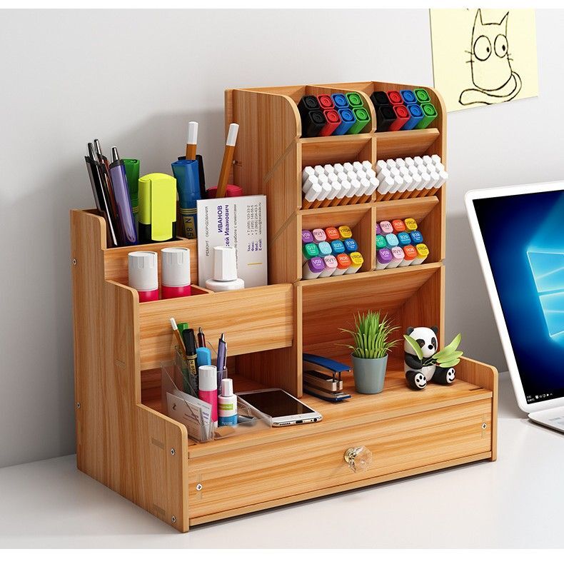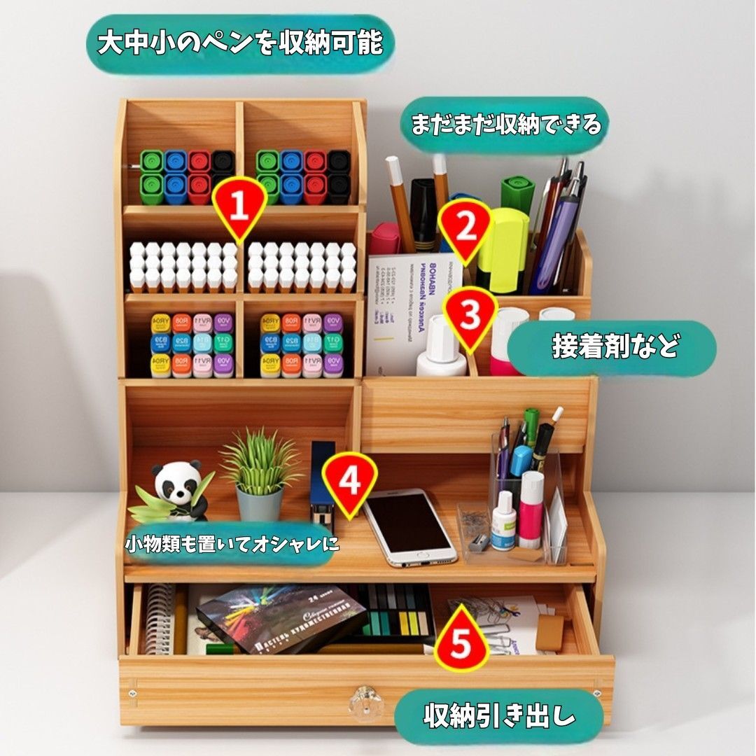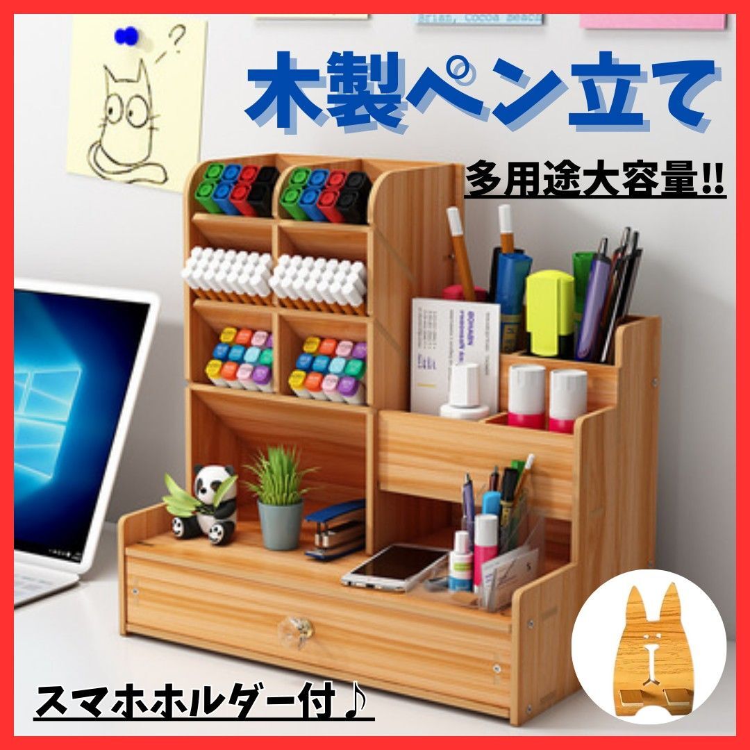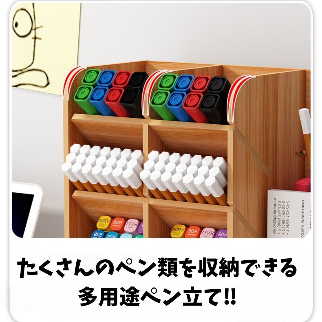 組み立て簡単、大容量の木製ペン立てホルダー!