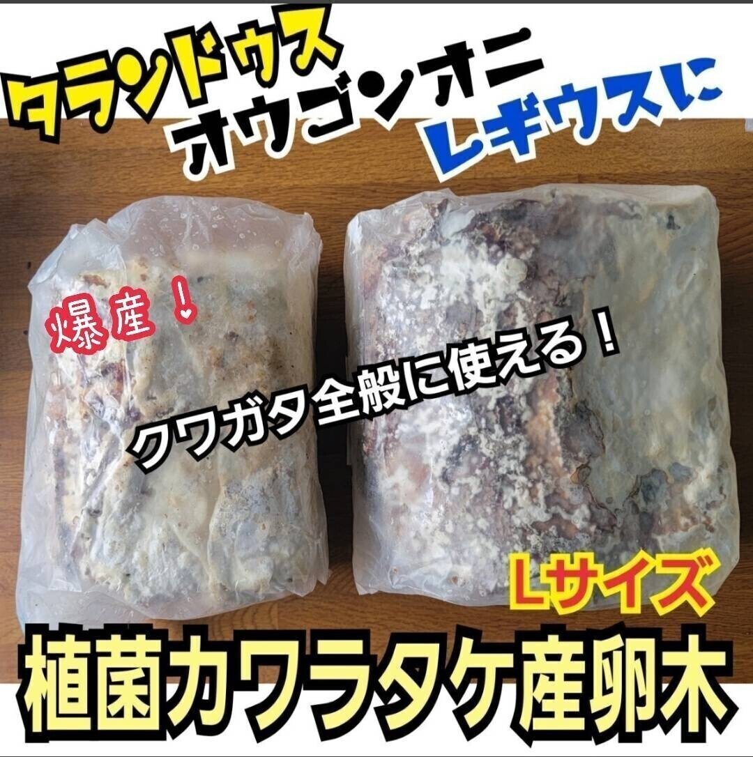 こだわりのカブトムシ、クワガタ用品を30年以上製造してきました。 たくさんのリピーター様には大変感謝申し上げます。 また、たくさんの効果報告を頂きありがとうございます。 植菌カワラ材特大(L)サイズの出品です。 ![]() 上に写真を10枚載せてますのでご覧下さいませ。 クヌギ・コナラ材にカワラタケ菌糸を植菌・培養したクワガタを産卵させる商品です。 良質の植菌材は入手困難です。 数量:1本 ![]() 何セットでも同梱発送致しますのでご希望の本数がございましたらご連絡くださいませ。 オウゴンオニクワガタ系やタランドゥス、レギウスの産卵に抜群の効果を発揮します。 ![]() 植菌されているため、普通の産卵木と違い、材がカビることがなく、初心者の方も手軽に利用できます。 面倒な加水作業も不要ですぐに使えます。 ![]() 長い年月、実験を繰り返し 従来、産卵が非常に困難とされていた、タランドゥス、レギウス、オウゴンオニクワガタの産卵に抜群の効果がある植菌カワラ材を商品化しました。 今やタランドゥス、レギウス、オウゴンオニの産卵でなくてはならないものです。 ![]() さまざまな種類のクワガタや産卵セット方法に対応可能です。 製造過程で高圧滅菌されているため、雑虫の残存も一切ありません。 通常の産卵木では産まない種も植菌カワラ材だと産卵したり、考えられない数の幼虫が取れるなど、今やクワガタの産卵には最強のアイテムになっています。