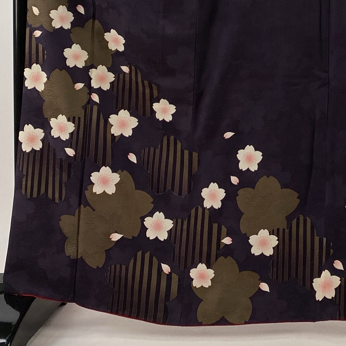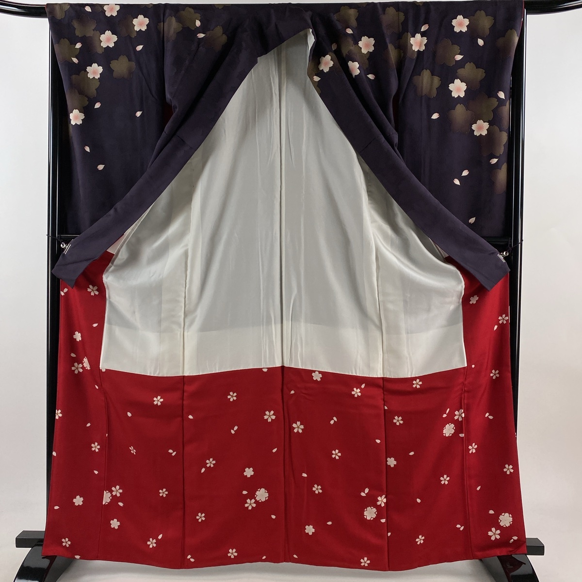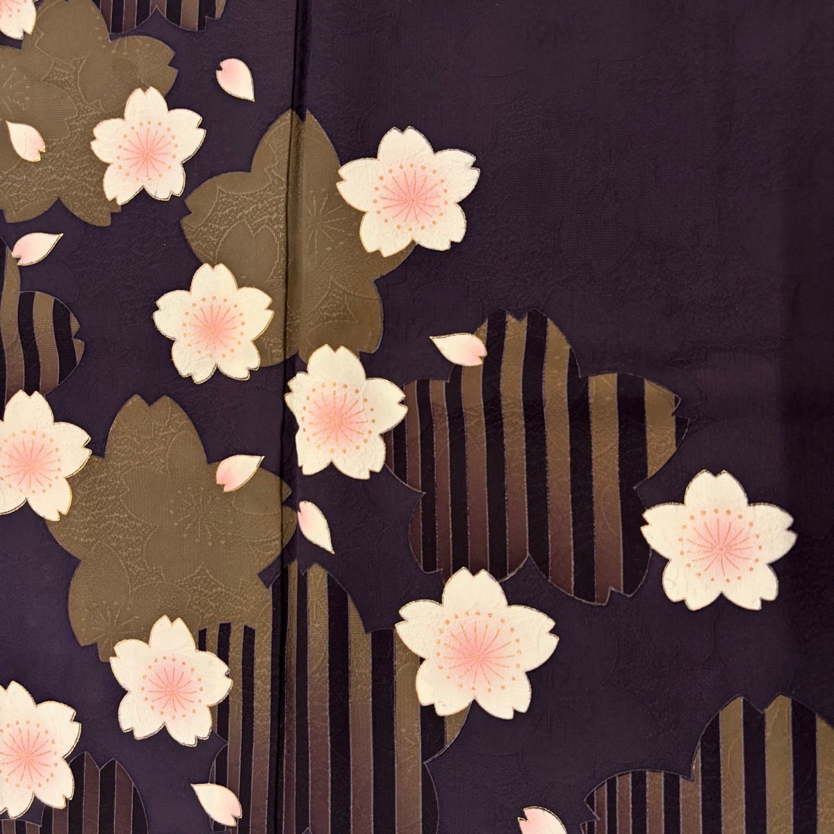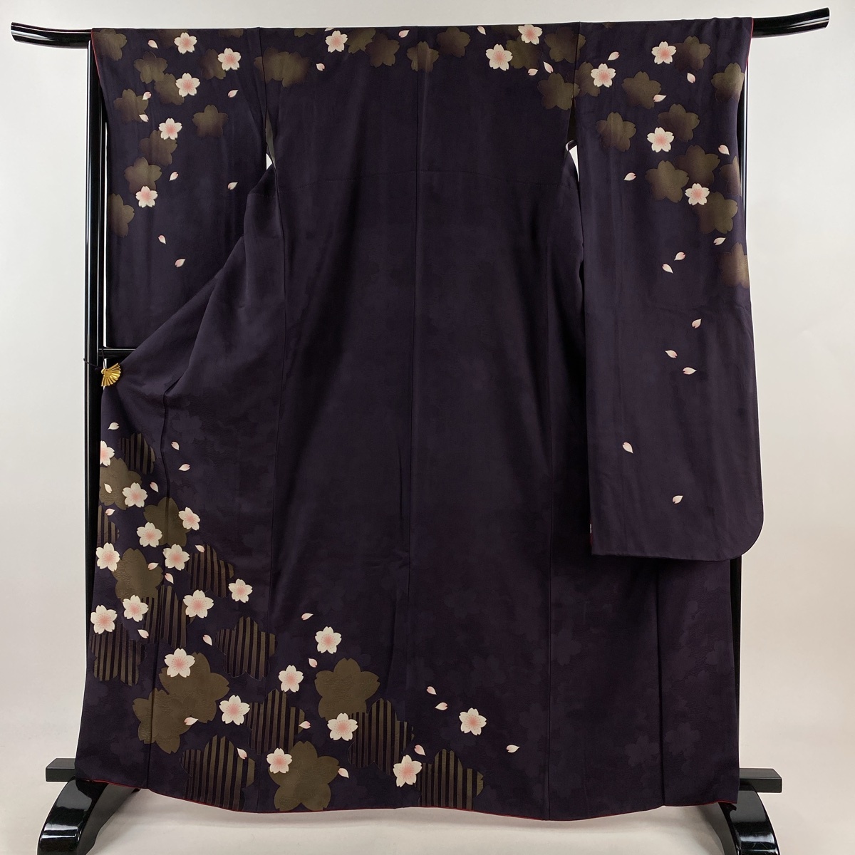 | 振袖 秀品 桜 桜の花びら 金彩 濃紫 袷 身丈163.5 裄丈67 M 正絹 【中古】 |