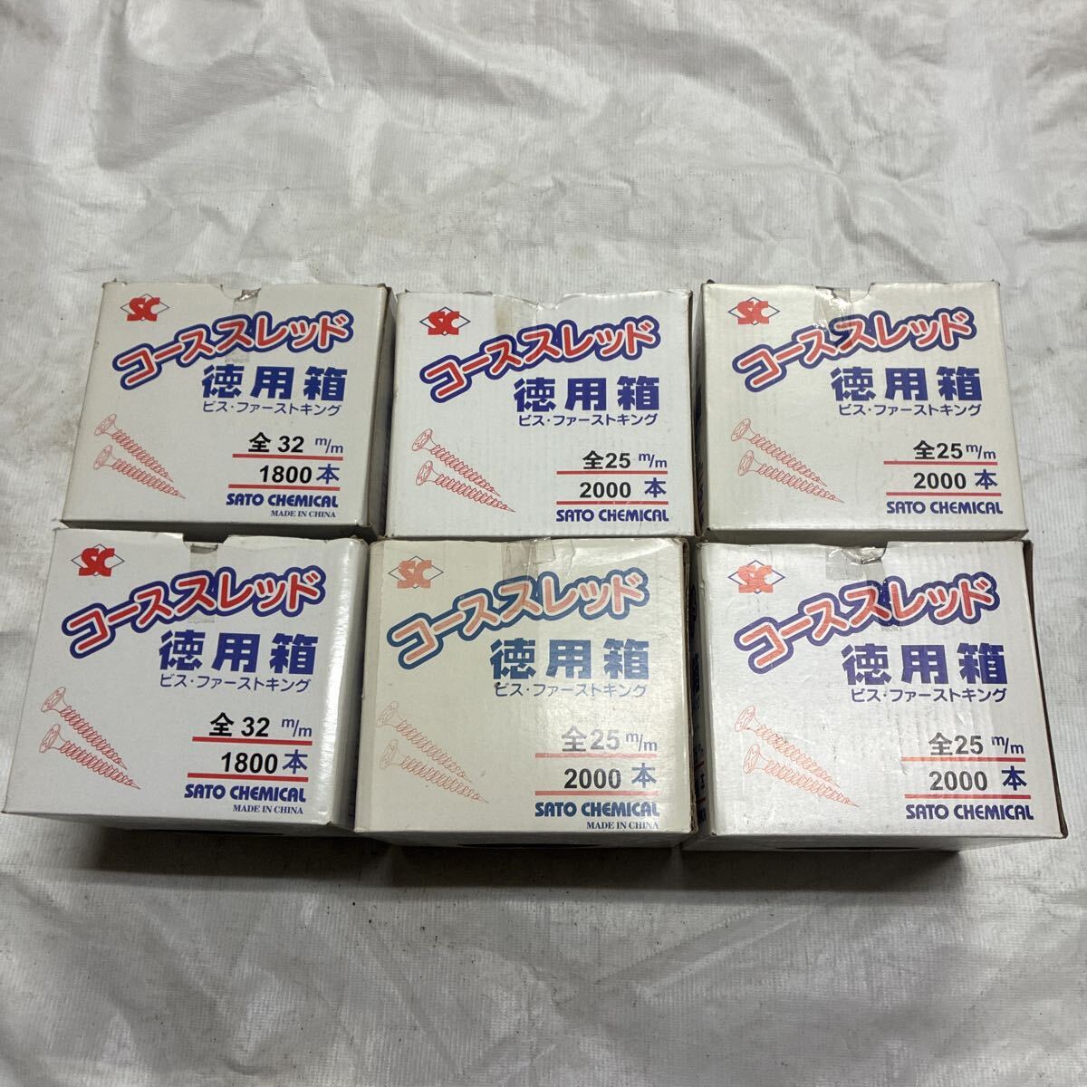 佐藤ケミカル、コーススレッド徳用箱、3.8x 25mm2000本、4箱全ネジ、38.x32mm1800本2箱全ネジ、セット未使用、保管品です。