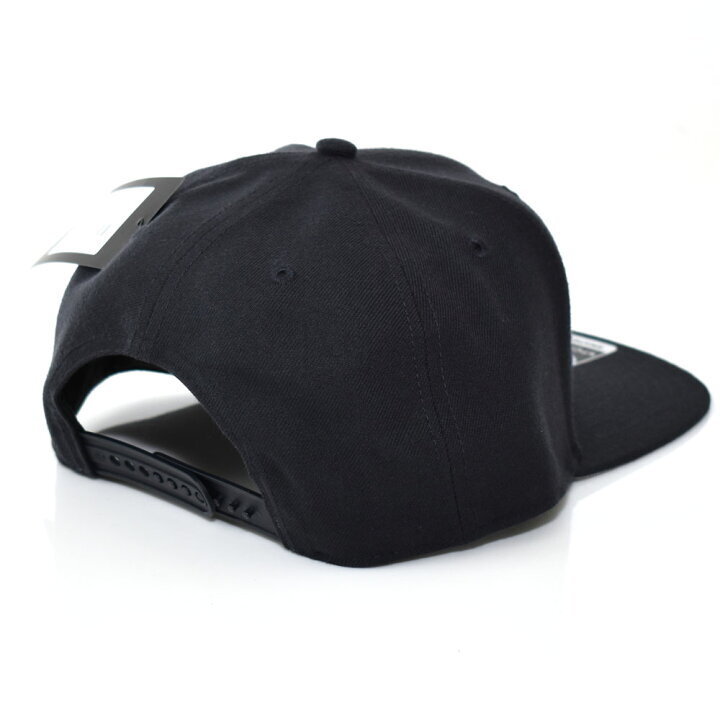 四角型のフラットバイザーと、芯ありのしっかりとしたフロントパネル、後部のスナップバックが特徴的。