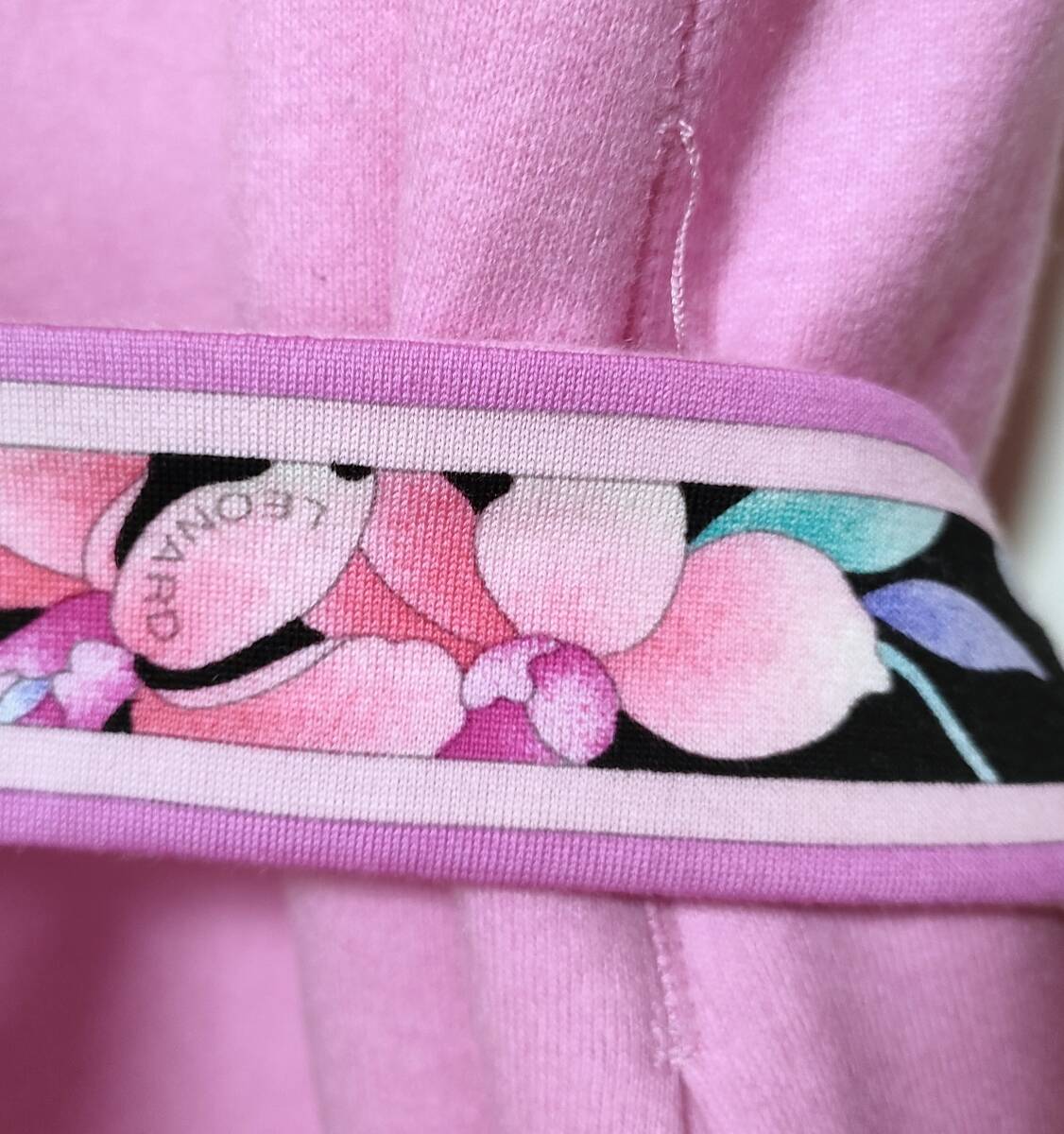 即決 送料込み 極美品 近年 レオナール ピンク ハーフコート サイズ38 40 42 花柄リボンベルト