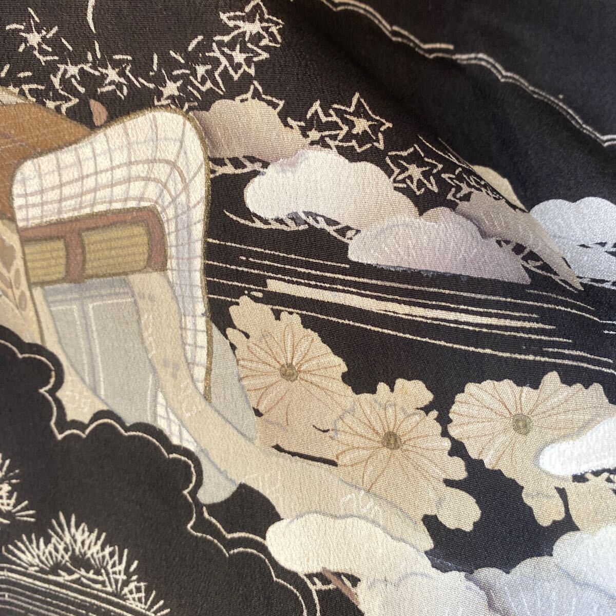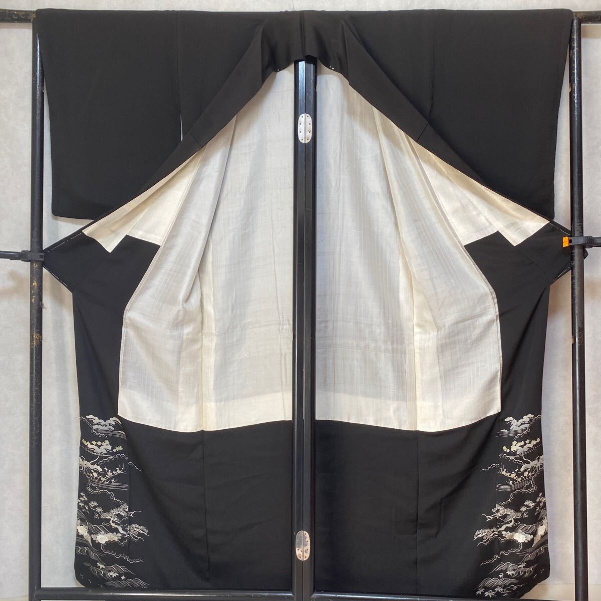 アンティーク 着物 正絹 黒留袖 松 山 波 昭和レトロ 大正ロマン モダン 和洋折衷コーデ リメイク 25こ23-13s