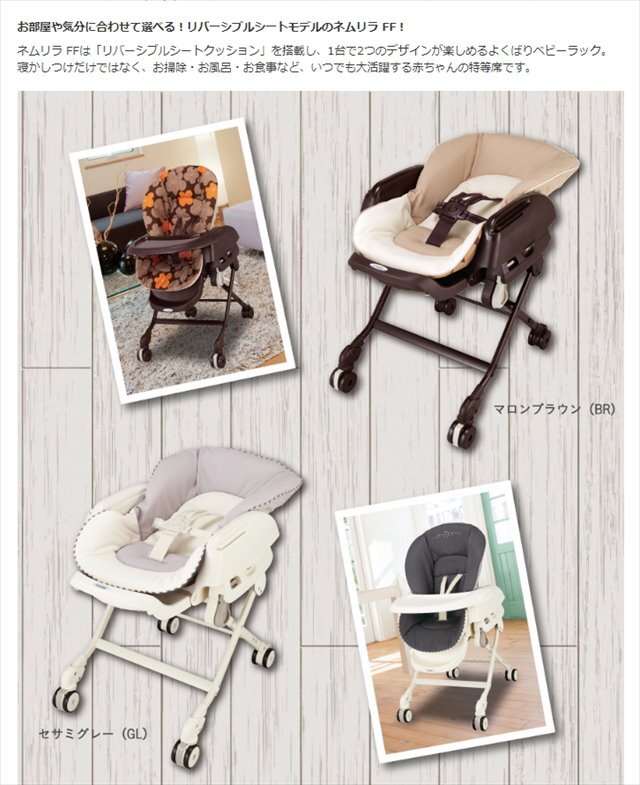 送料無料 ネムリラ FF マロンブラウンBR 手動ハイローチェア コンビ リバーシブルシート 新生児OK クリーニング済み