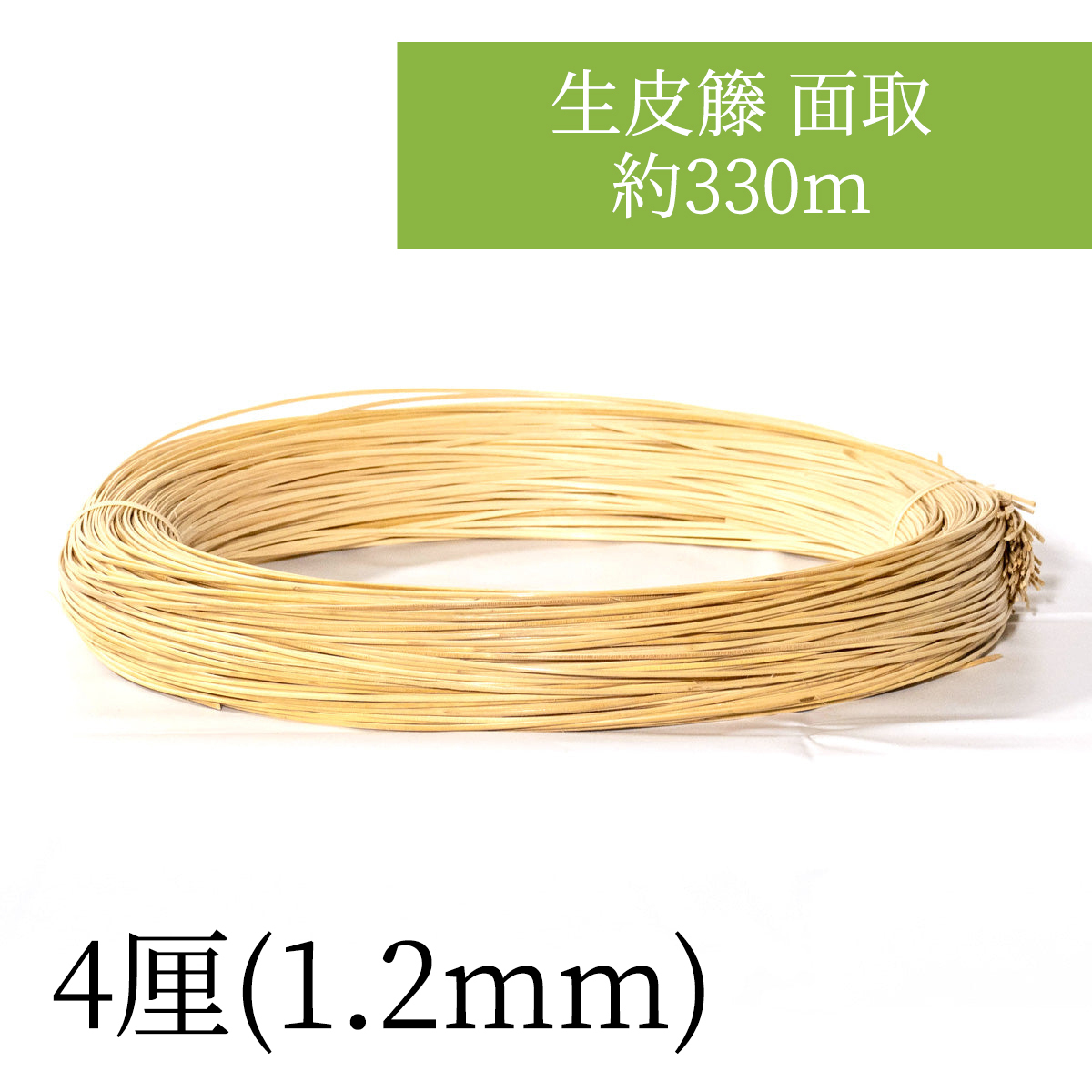 皮籐はツヤ籐(丸籐)を割って挽いて皮の部分だけを一定の幅と厚みに調整した材料です。