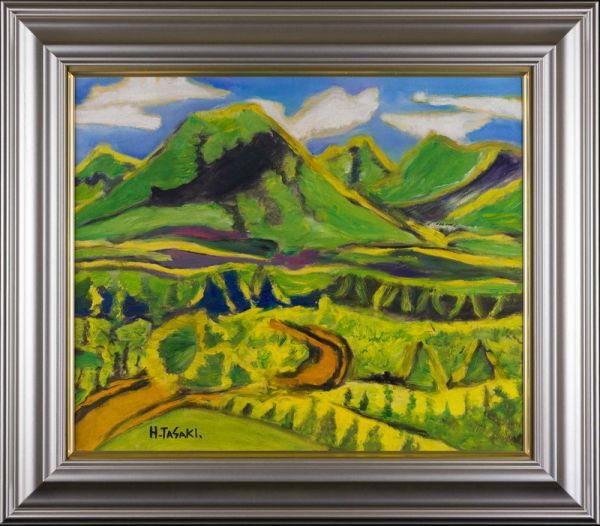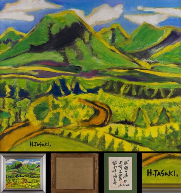 | 作品名:【模写】田崎広助 油彩 手描き『那須ヶ岳』表サイン 裏サイン 田崎暘之介鑑定シール F8号 額装/b702 |