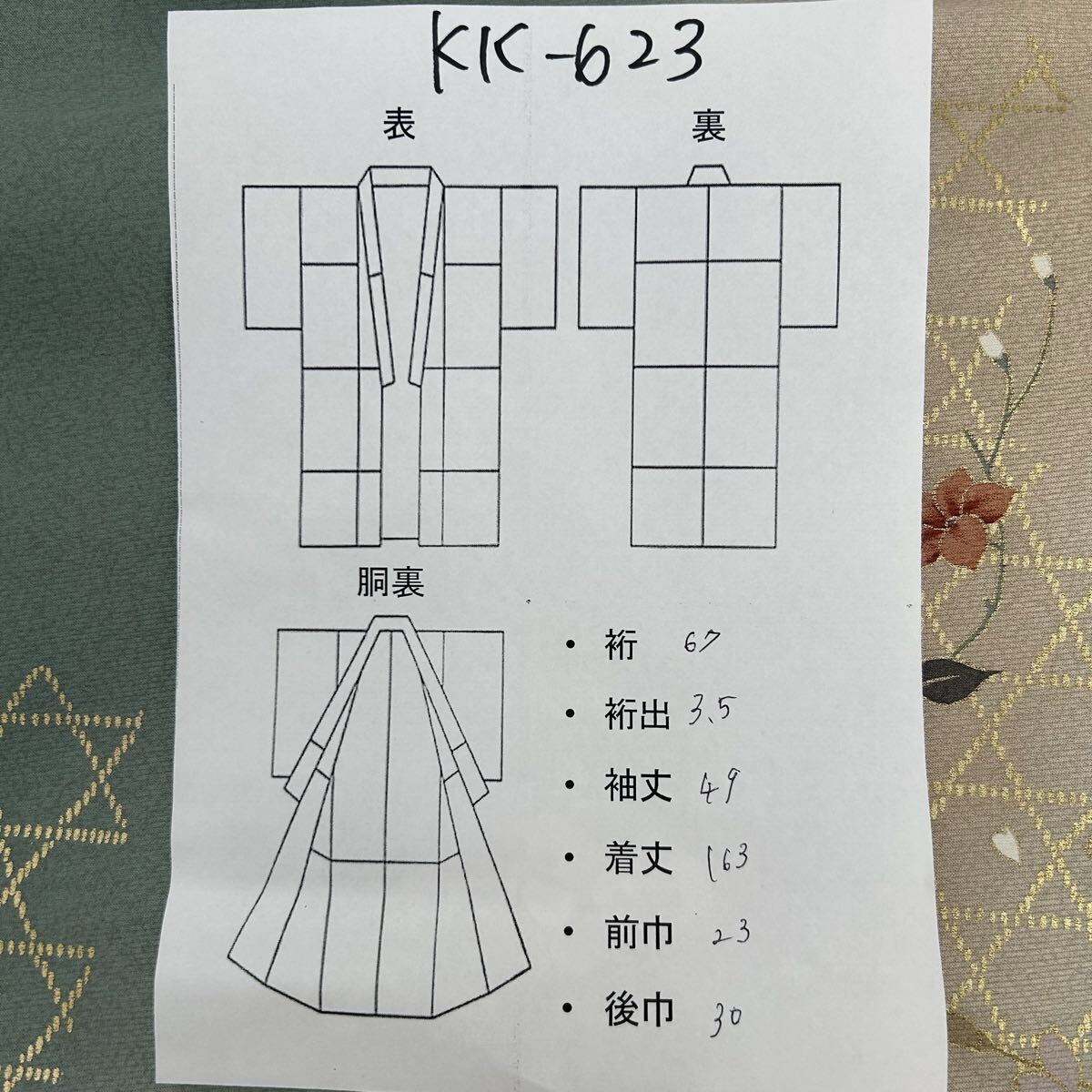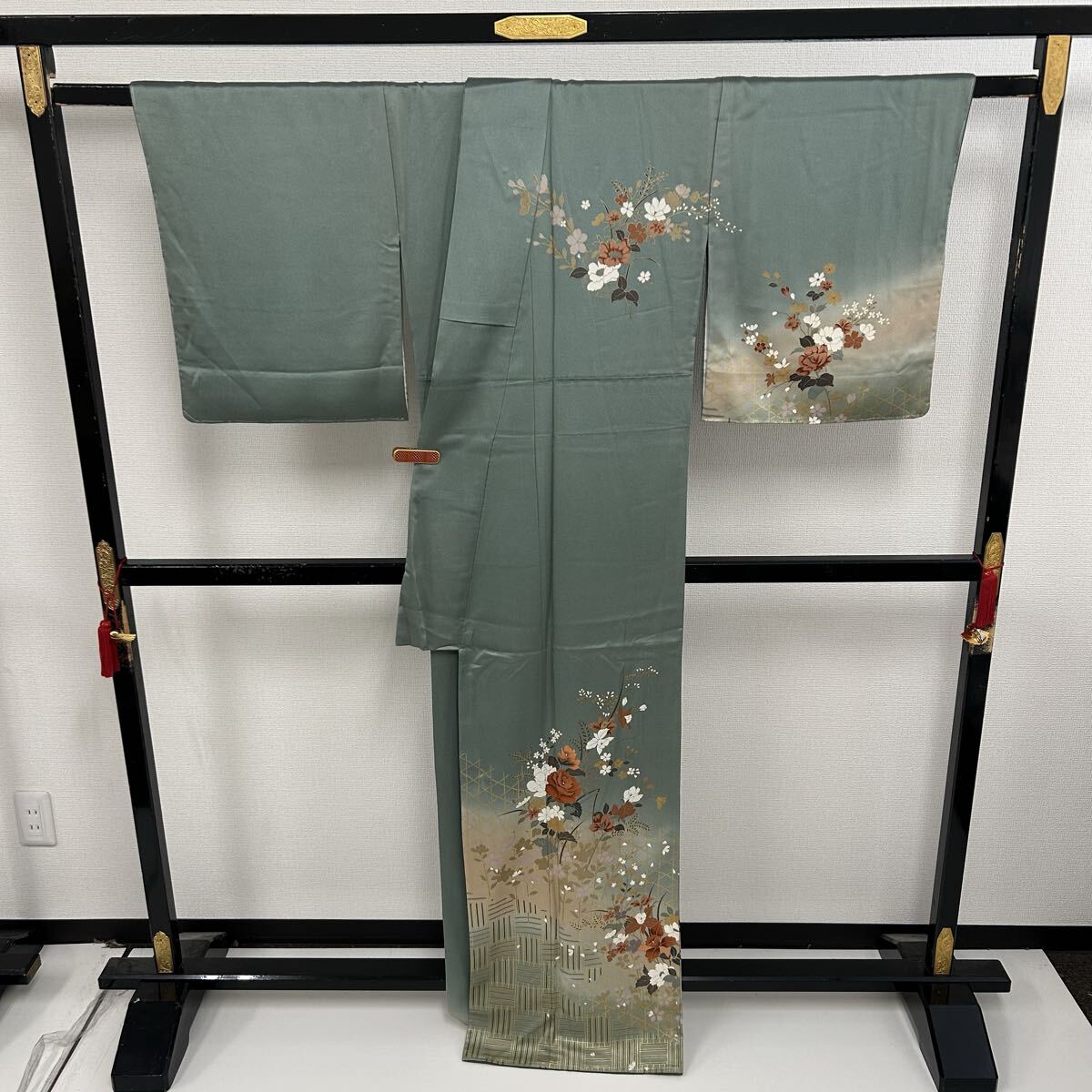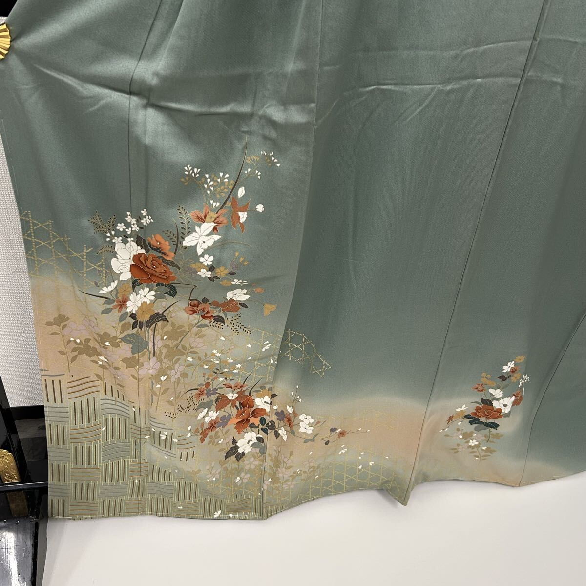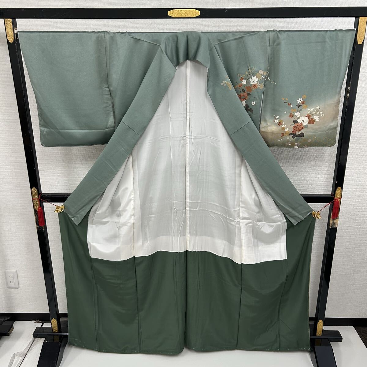 【楓】裄67 訪問着 正絹 紋なし 美しい花 袷 着物 KK-623