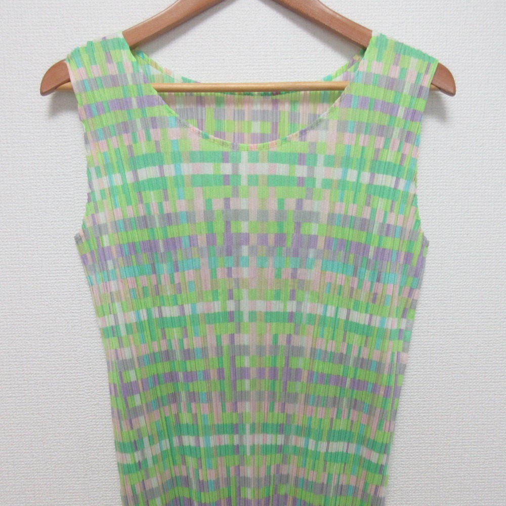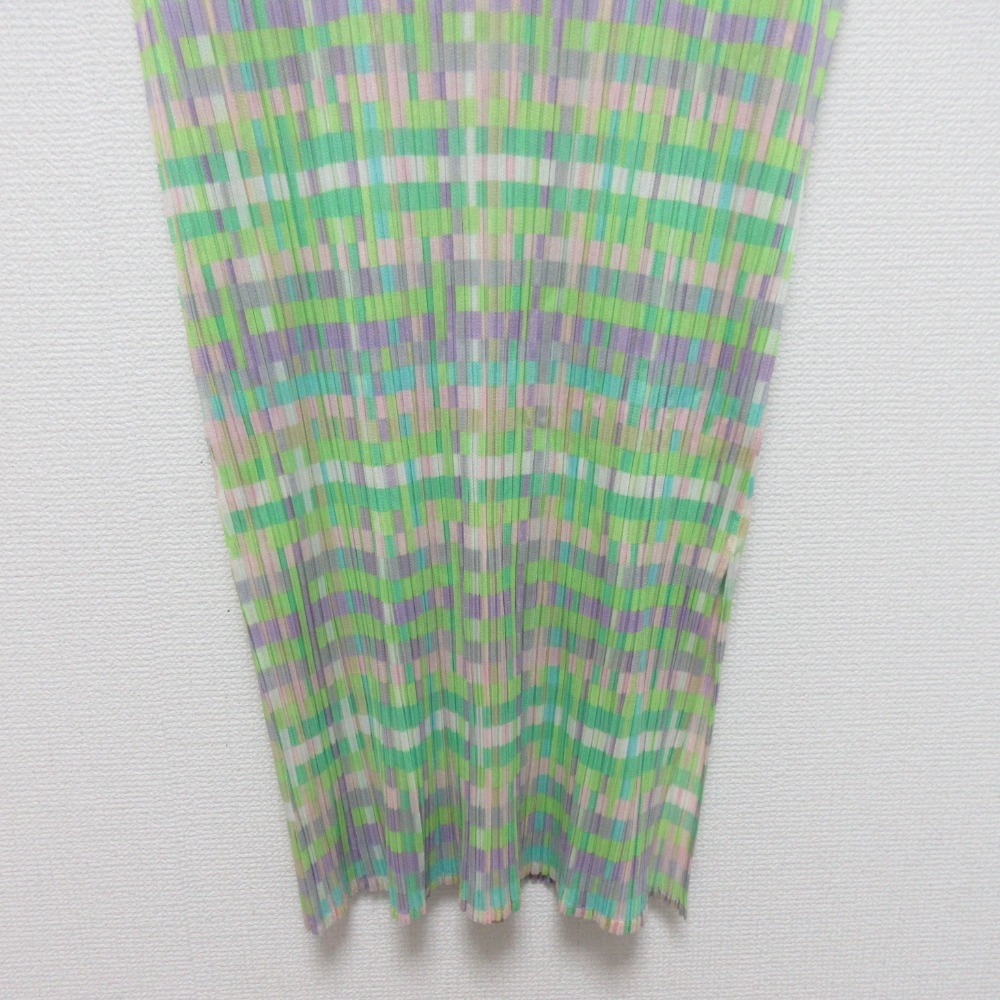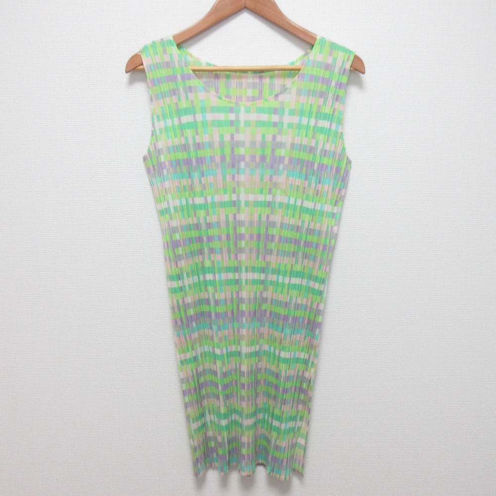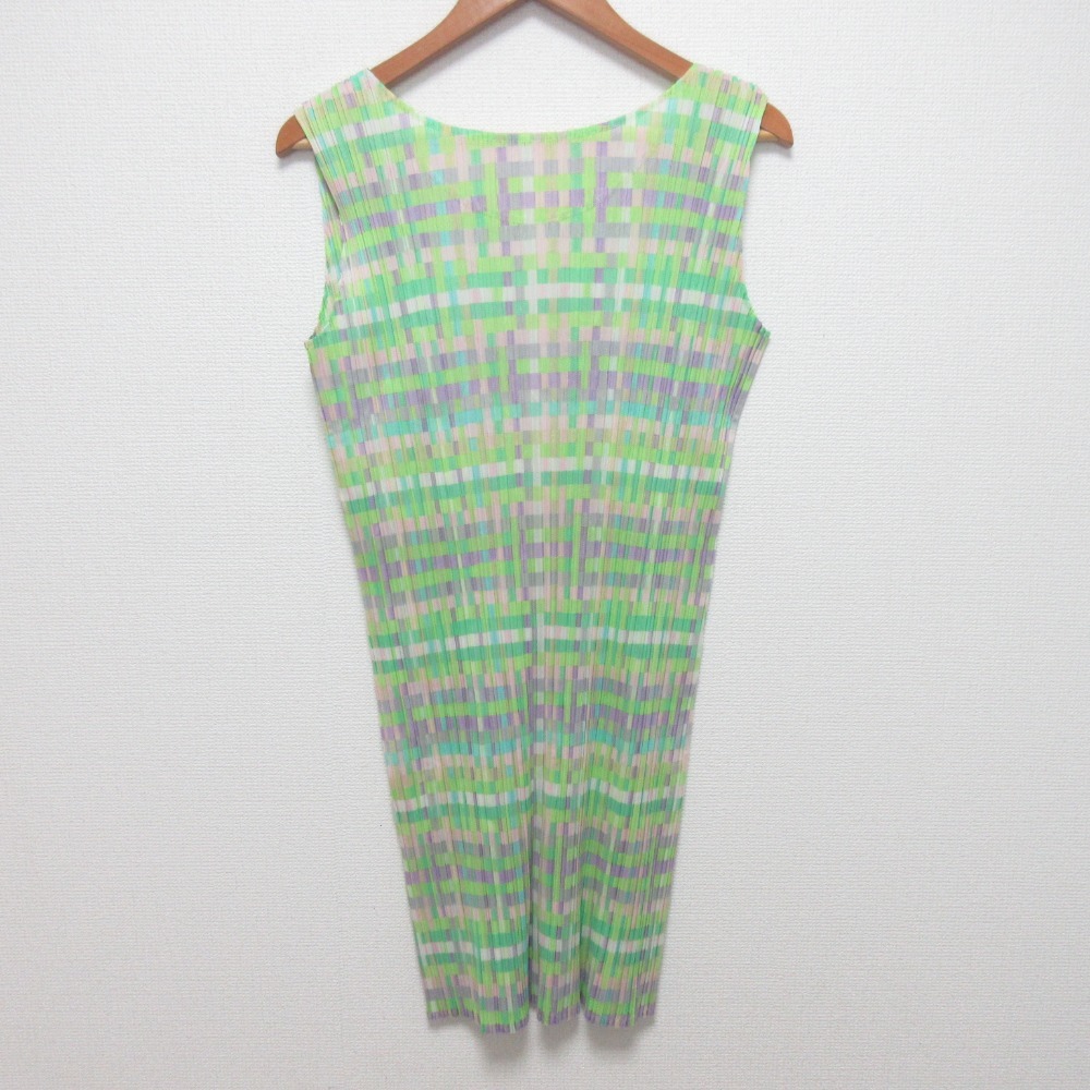 美品 PLEATS PLEASE プリーツプリーズ イッセイミヤケ ノースリーブワンピース PP51-JK637 サイズ3 グリーン マルチカラー