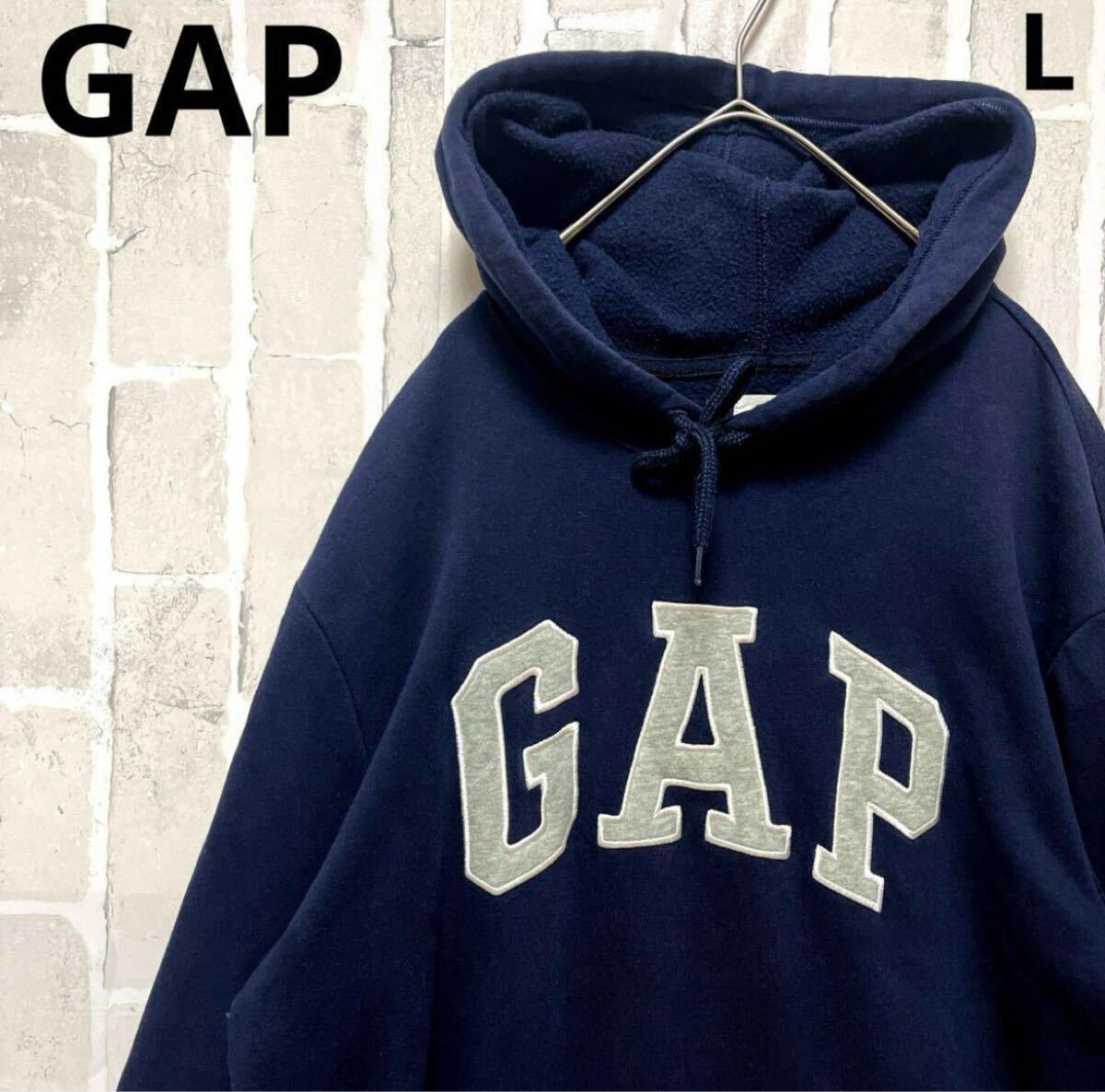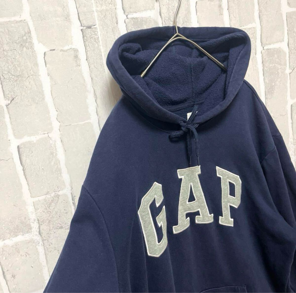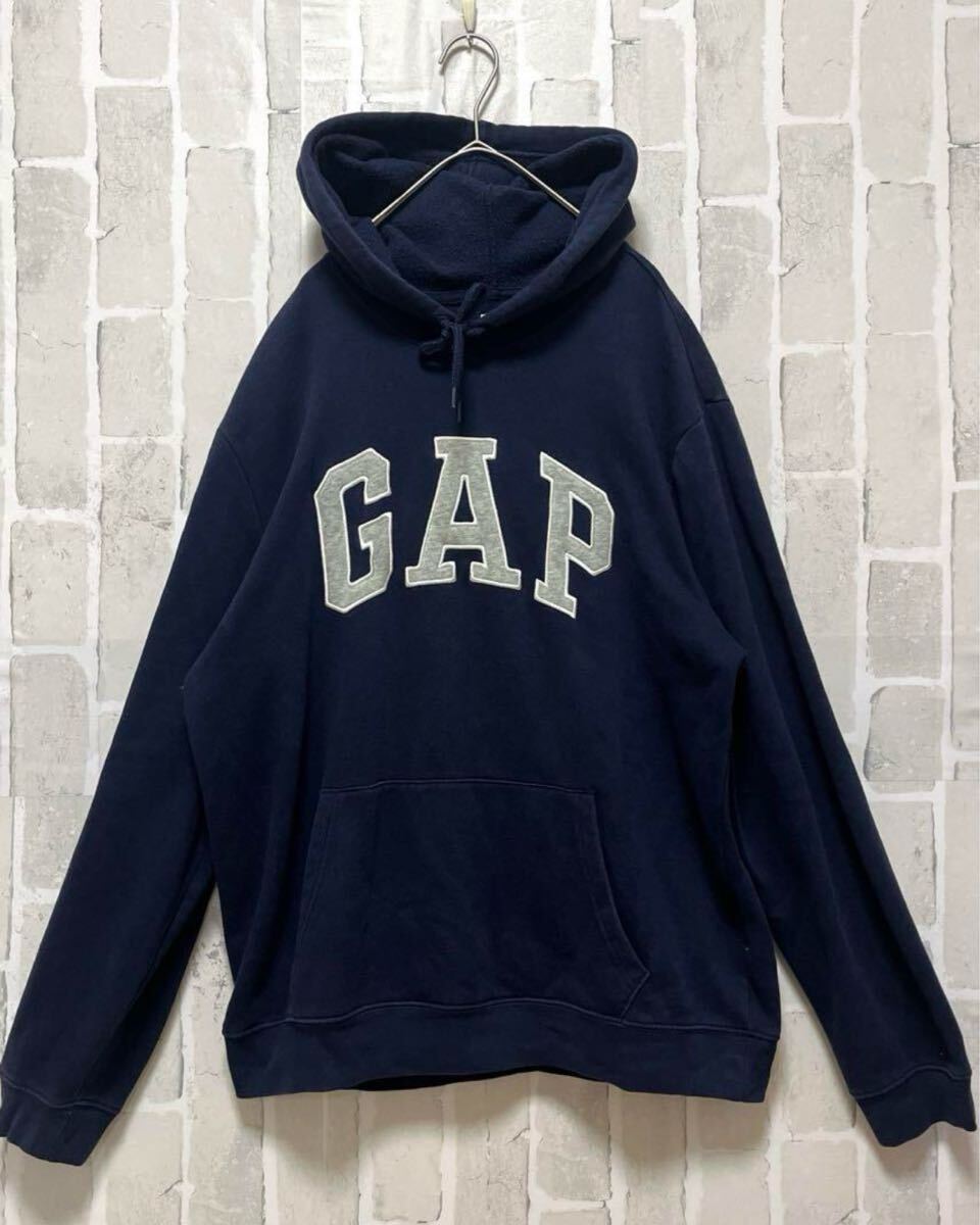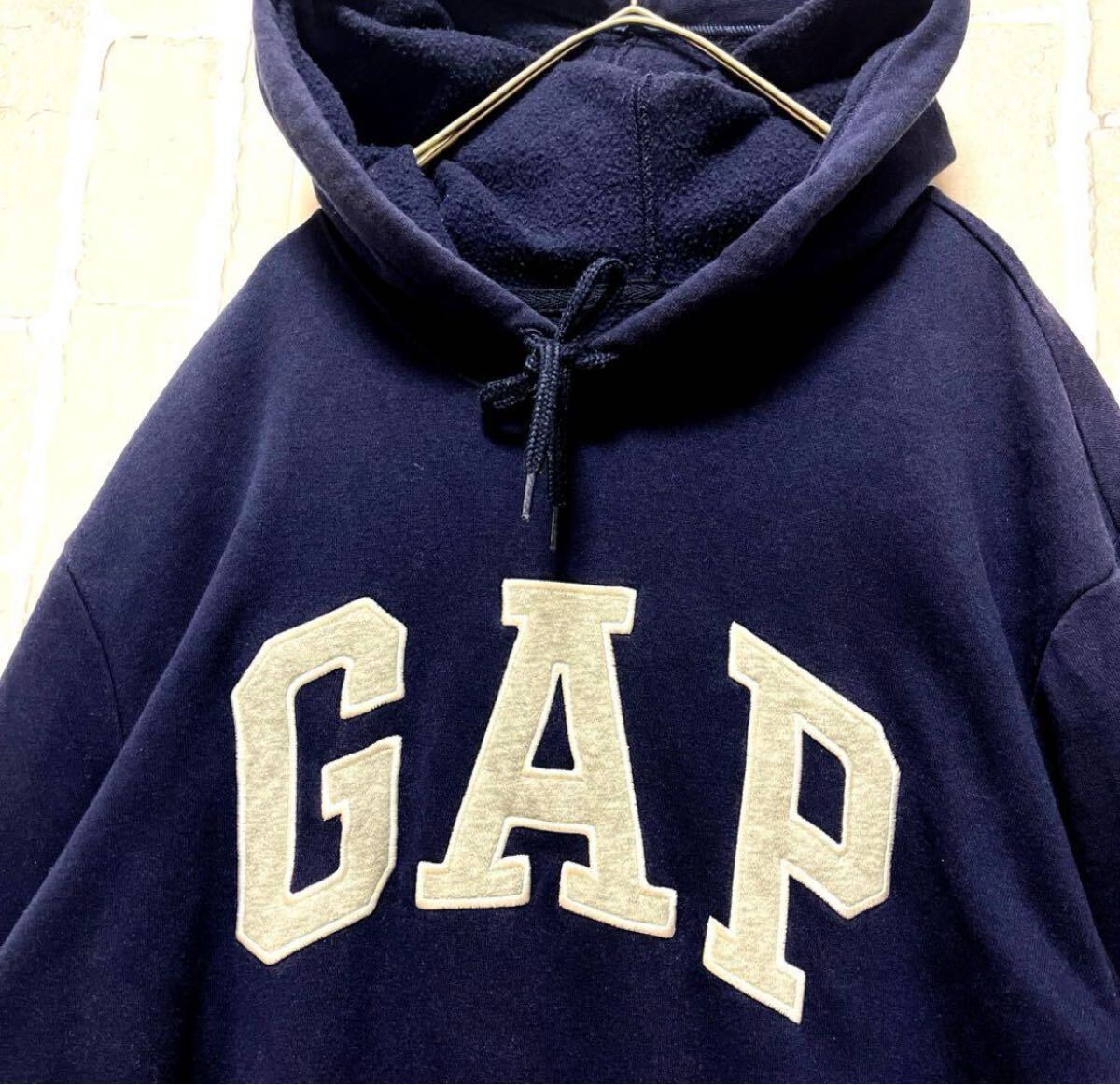GAP ギャップ パーカー スウェット サイズL デカロゴ ビッグロゴ 刺繍 ワッペン ネイビー 長袖 プルオーバー フーディ 裏起毛 柴田ひかり 送料無料の出品です。