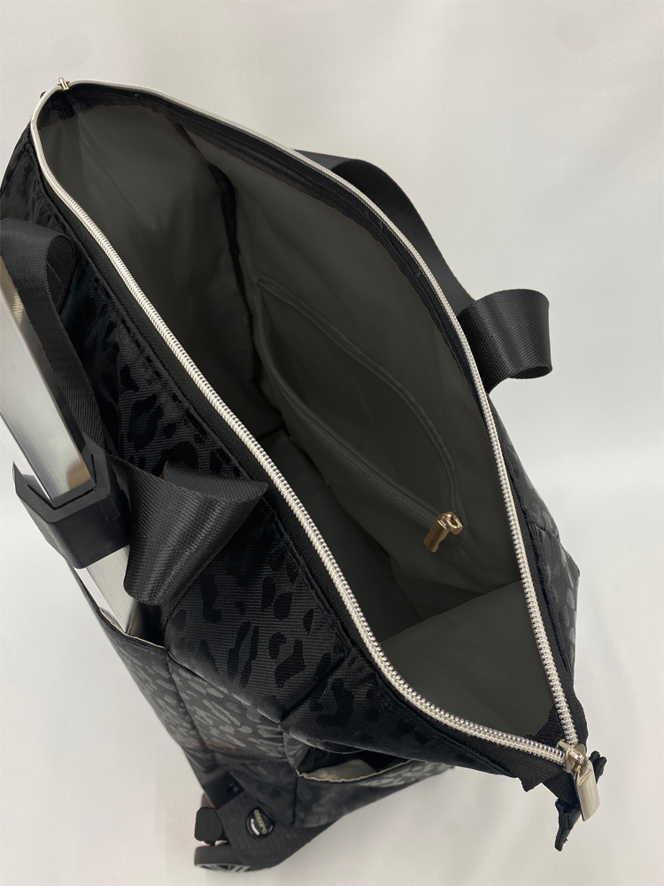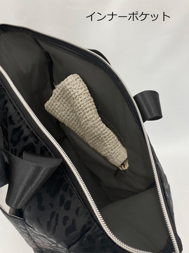 ●光沢感のある生地を使ったレオパード柄の4輪カートです。