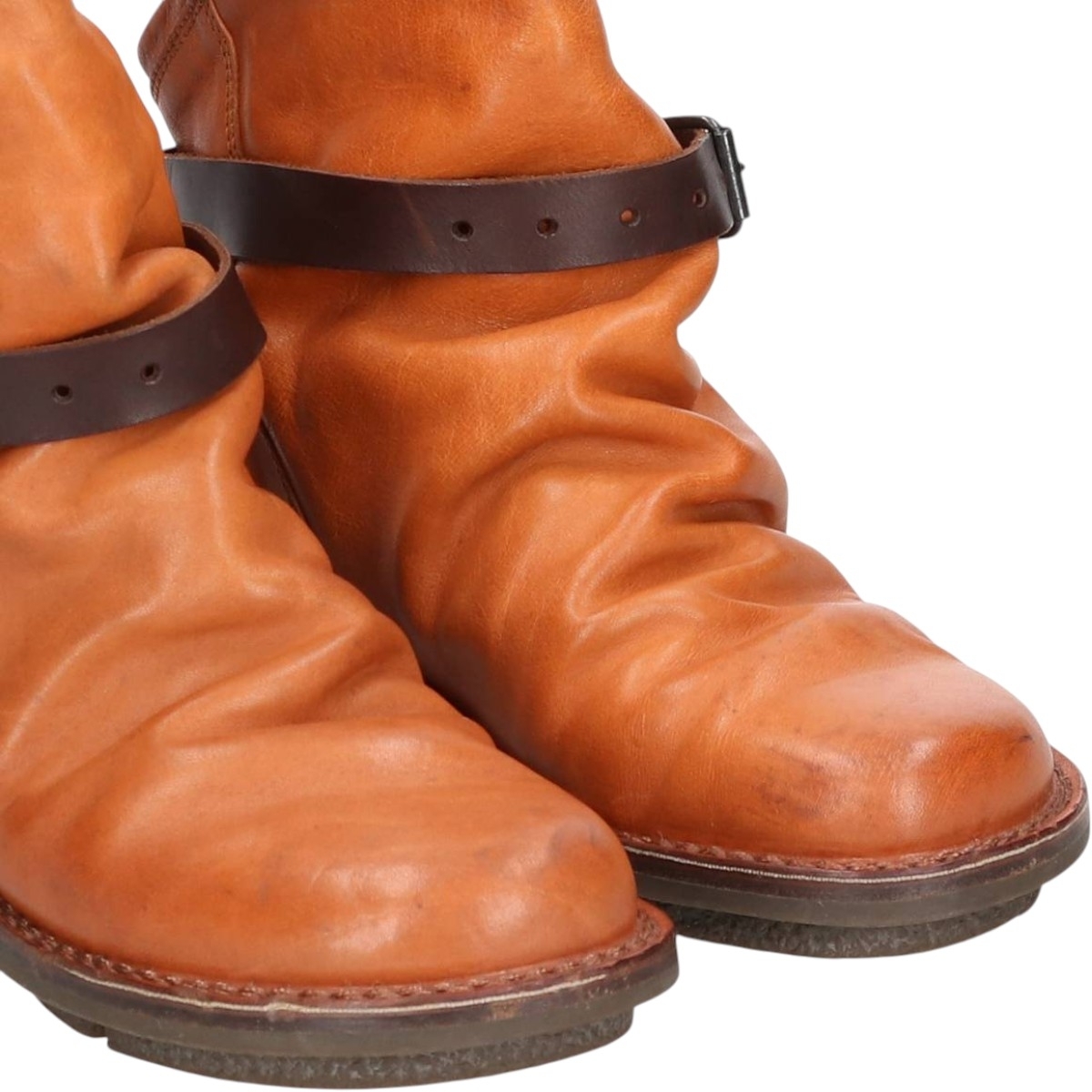 | 着用感: レディース25.0cm 表記サイズ: 不明 ヒール高さ: 4cm ブーツ高さ: 10cm アウトソール: 30cm アウトソール最大幅: 11cm ![]() | ![]() ランク:C USEDですのでキズやシミ、履きじわ、アウトソールの減り、薄汚れ等がございますがご使用頂く上で問題ないと判断した物については写真や記載を省略しております。その商品の持つ雰囲気や味として、古着という事をご理解頂いた上でご注文お願い致します。 【状態追記】 ●両足、トゥに汚れ ベルト金具に錆び ●両内側部・両外側部、アッパーに汚れ ●左内側部、履き口に擦れ |