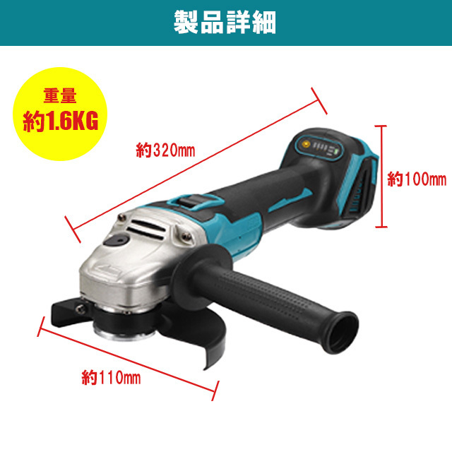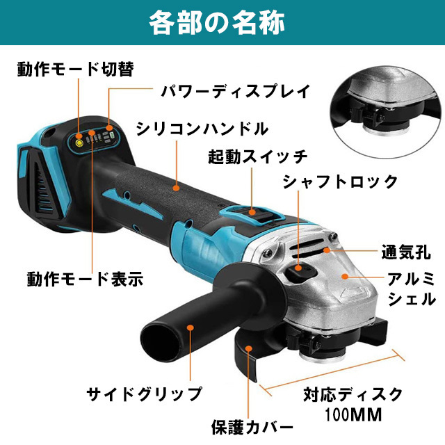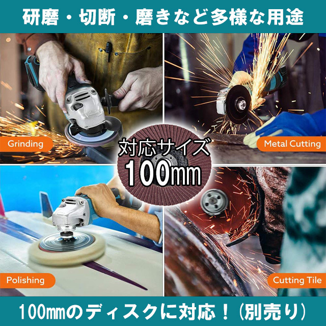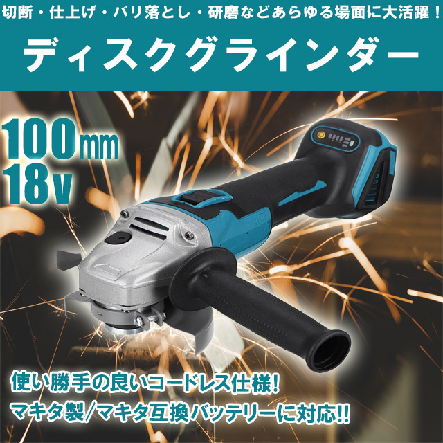 ディスクグラインダー 100mm 電動 充電式 18v 14v 互換 研磨機 コードレス ブラシレス makita マキタバッテリー対応