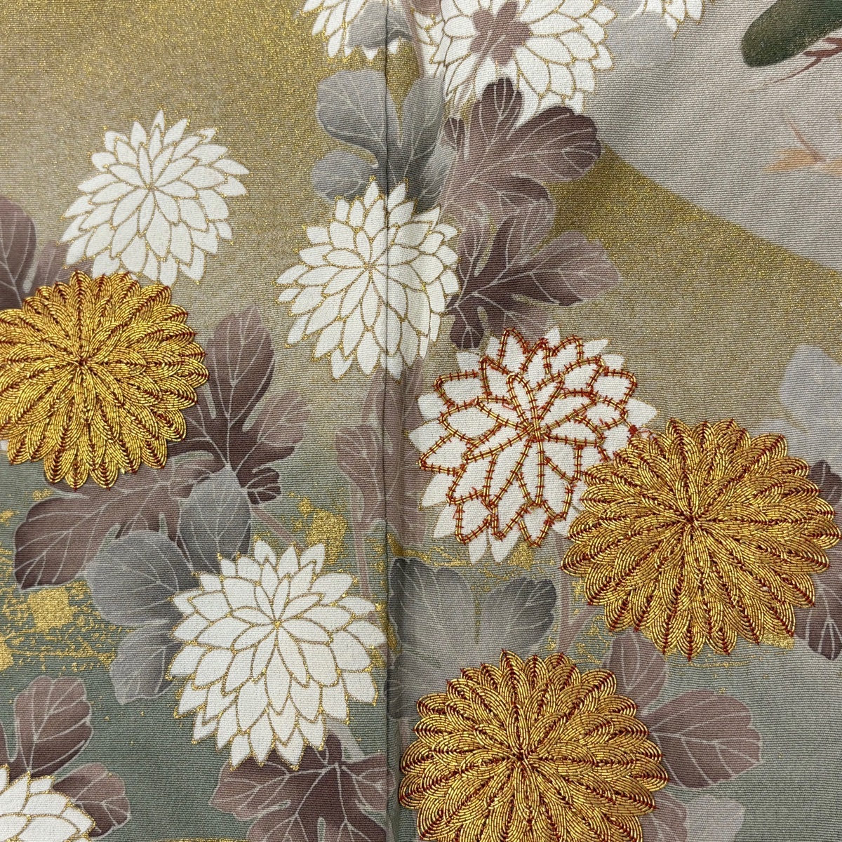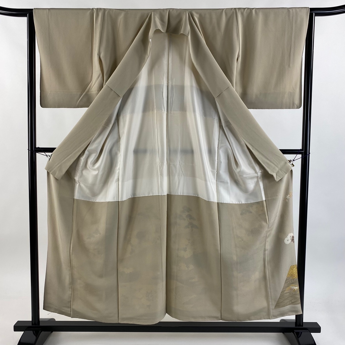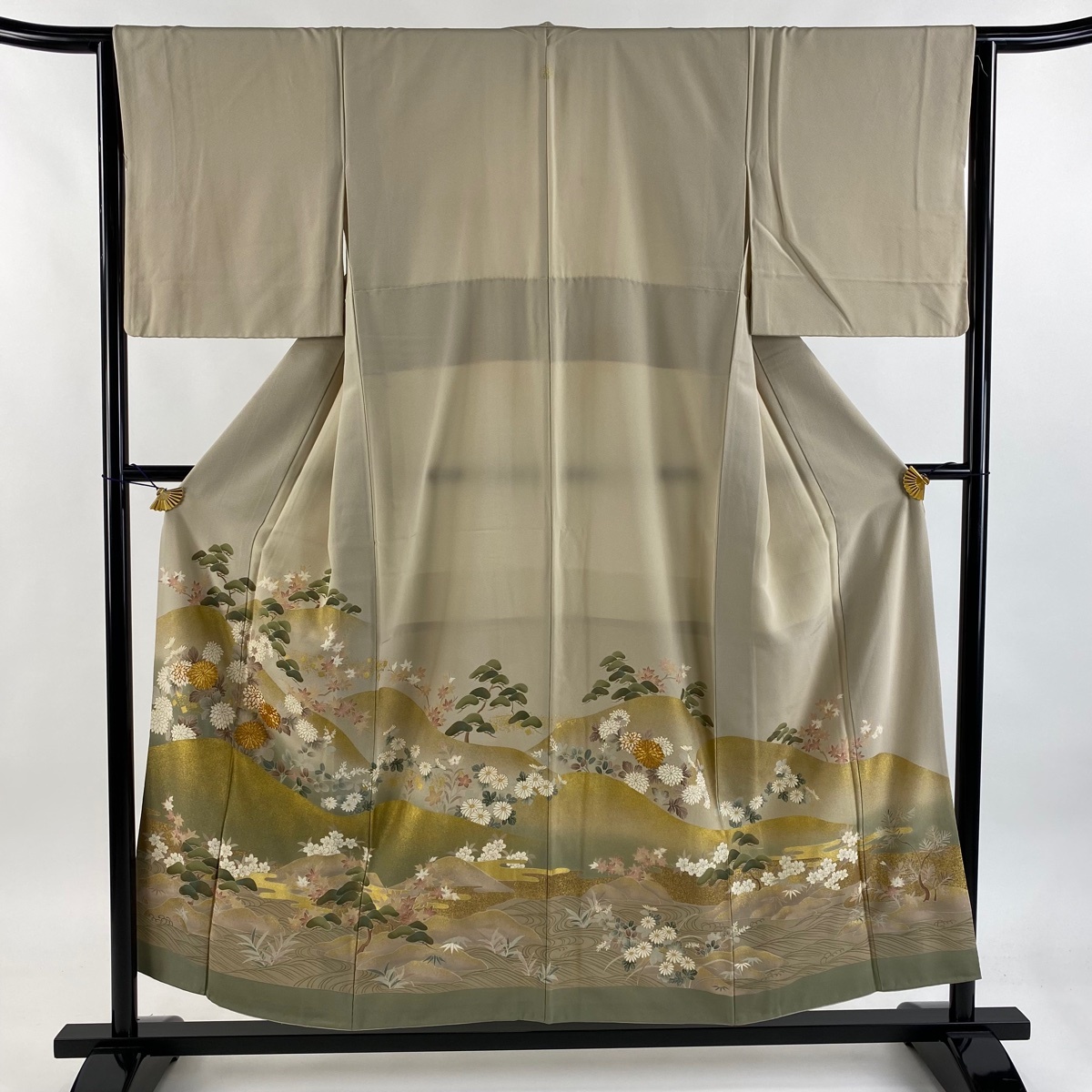 | 色留袖 秀品 菊 山並み 金糸 金彩 灰茶 袷 身丈153.5 裄丈64 M 正絹 【中古】 |