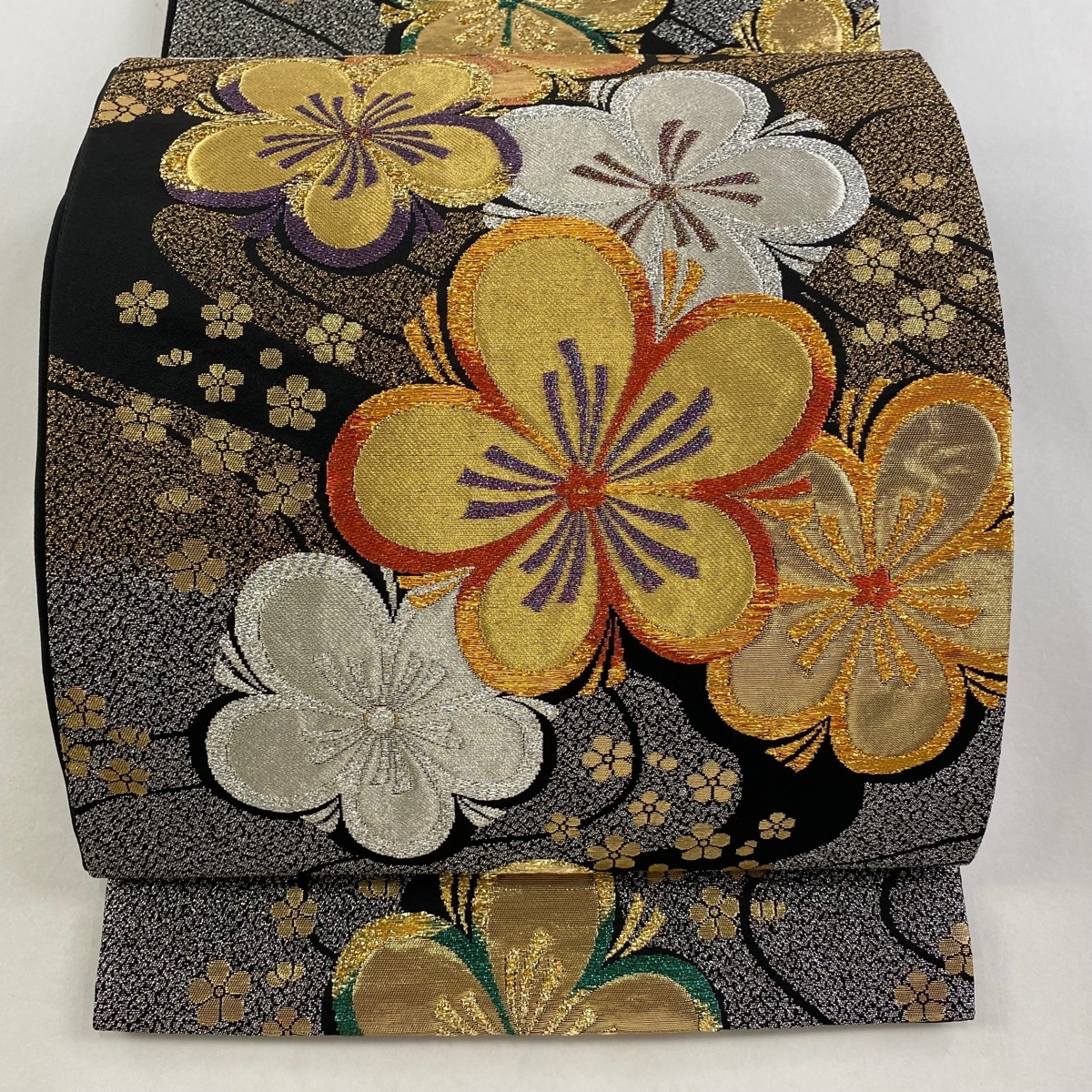 | 袋帯 美品 秀品 梅 流水 金銀糸 箔 黒 六通 正絹 【中古】 |