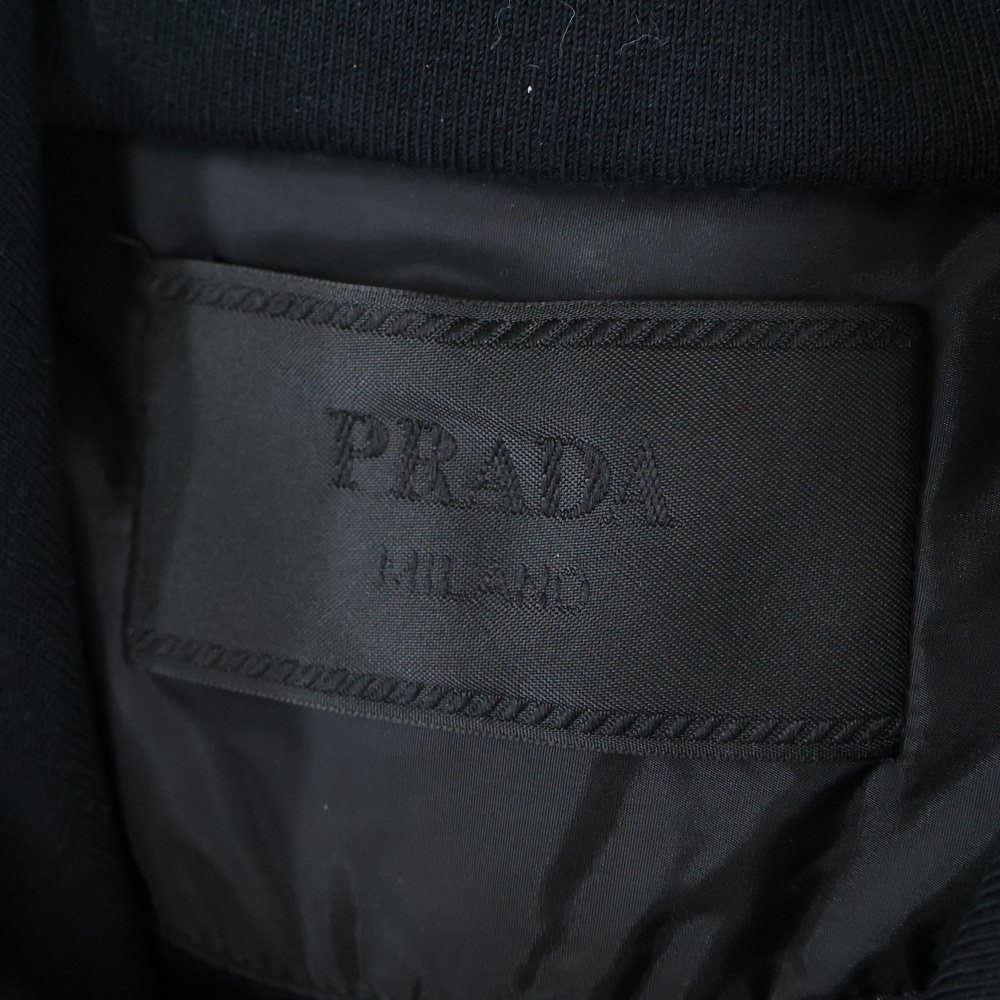 PRADA プラダ 25SS ナイロン切り替え トライアングルロゴ ラバープリント プルオーバースウェットパーカー フーディー ブラック UJL20A