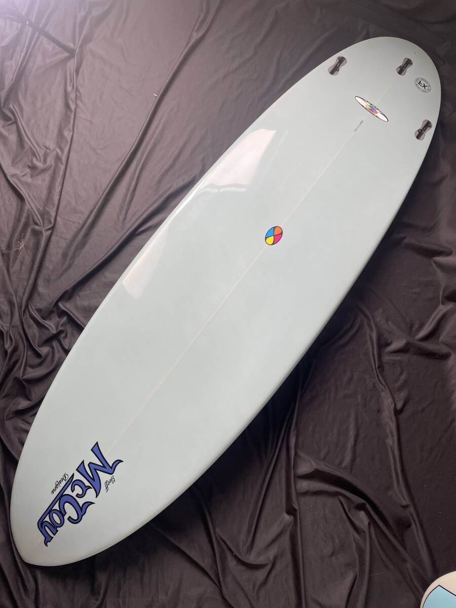 最高に浮力があり最高に良く動くミッドレングス。ツーテンポテイクオフが早い理由は、ジェフマッコイ氏曰く小波からバイロンベイのチューブでのハードなテイクオフまで考えたデザイン。超浮力があるのにレールもロッカーもあるバランスで乗ったことがある人を虜にしてしまうすごいデザインです。私自身30年間乗り続けています。【ブランド】McCoy SURFBOARDS(マッコイサーフボード)60年代から、常に一線で活躍するレジェンドシェーパー。80年代にワールドチャンプだったシェーンホランのフィードバックで制作されたオールランドナゲット、レーザーザップなどは現在でも多くのリピータ、ファンが存在するロングセラー。全てのモデルに採用されているローデッドドームボトムは現在主流のコンケーブとは逆で削るのでは無く盛るようなイメージでシェープされている。ボリュームがありながらロッカーもしっかり有り、ロングボードやファンボードでもリッピングやカービングターンを楽しむ事が出来る。スモールウェーブからノースショアまで波を選ばない凄いボードです。テイクオフが信じられないぐらい速いので、どんな波でも余裕を持ってサーフィン出来ます。初心者から上級者まで納得の一本です。【モデル】ALL ROUND NUGGET(オールラウンド ナゲット)【サイズ】6,10 x 21,1/2x 2,7/8【ボリューム】51 リッター【素材】XF(EPS)※ストリンガー付きのEPSブランクスにエポキシレジンを使い、JPSクロス+BIAXクロスを組み合わせた構造がXFテクノロージーです。強度が通常のEPS&エポキシレジンの組み合わせより強く、軽量でフレックス性能が優れています。【フィン システム】FCSII(スラスター) ※フィンは付属致しません【カラー】LT BLUE/BLUE【テール形状】ラウンドテール状態 新品未使用全国一律料金発送は西濃運輸支店どめのみです。 西濃運輸営業所止めで、大型荷物が止め可能な営業所のみの発送となります。 全ての営業所で留めが出来るわけではありませんので、お近くの営業所が可能かお調べくださいませ。 西濃運輸 営業所止めが可能な営業所 seino_branch_tome.pdf (branchseino.jp) こちらにない小口荷物の西濃支店では、発送できません。離島は沖縄本島のみになります。