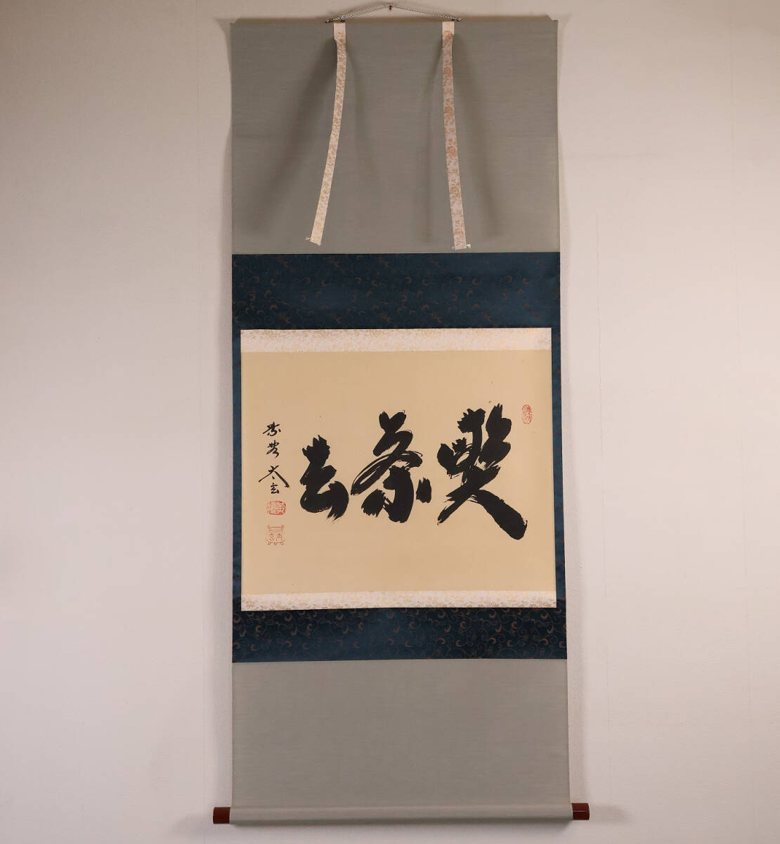 ◇【真作】茶掛 黄梅院 小林太玄「喫茶去」三文字 紙本 掛軸 横物 茶道具 書◇