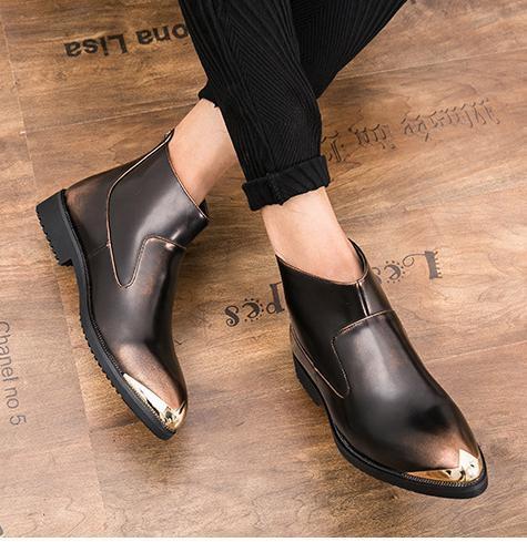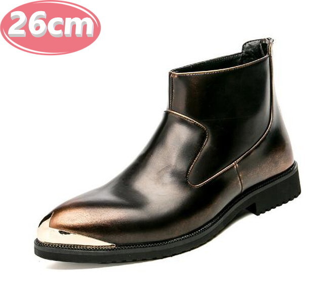 メンズ ビジネス PUレザー シューズ ゴールド 26.0㎝ 革靴 靴 カジュアル 屈曲性 通勤 軽量 インポート品【n160】
