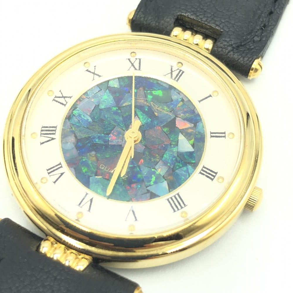 | 209999093774)【不動品】ブラックオパール腕時計 TOYOTA刻印有り ベルト劣化有 |