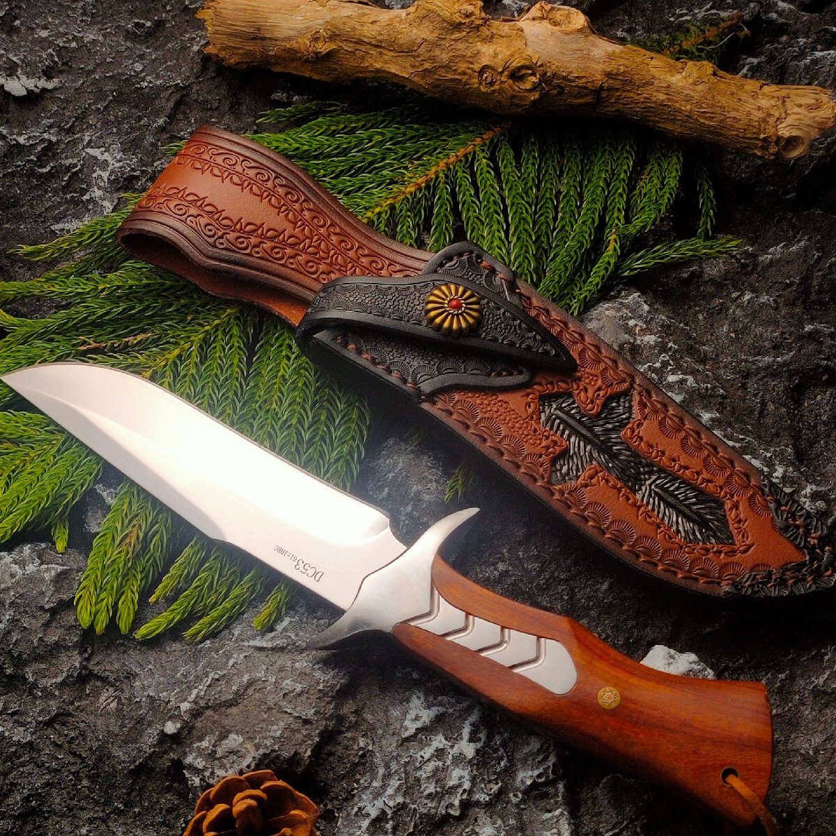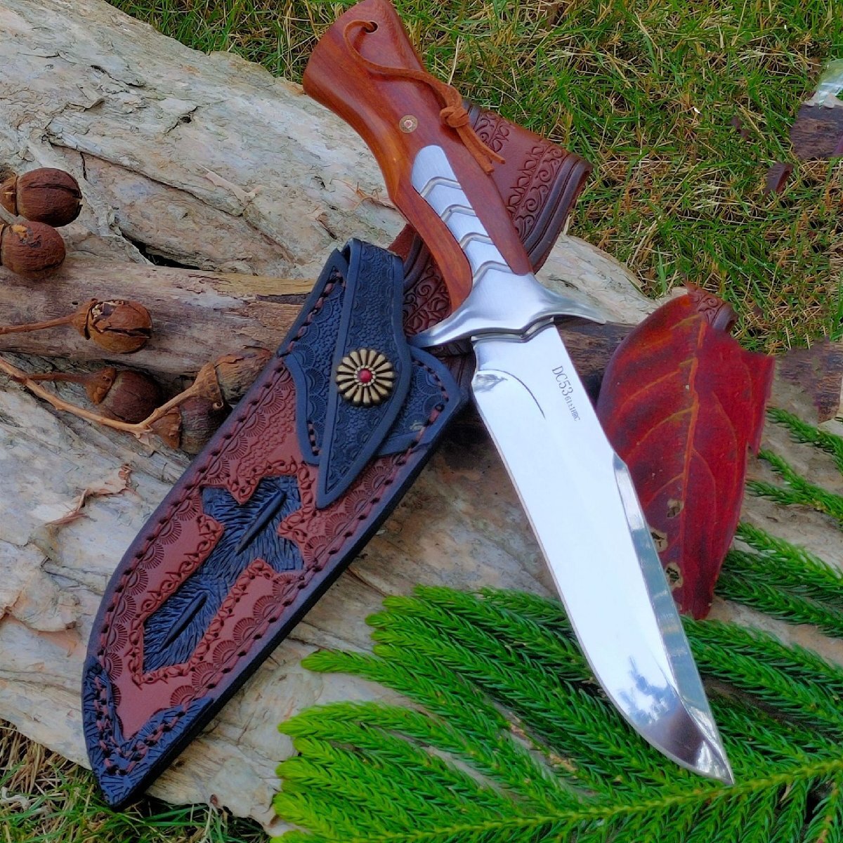 DC53 超高品質 サバイバルナイフ アウトドアナイフ 鋼製 薪割り シース付き キャンプ ハイキング 野外登山