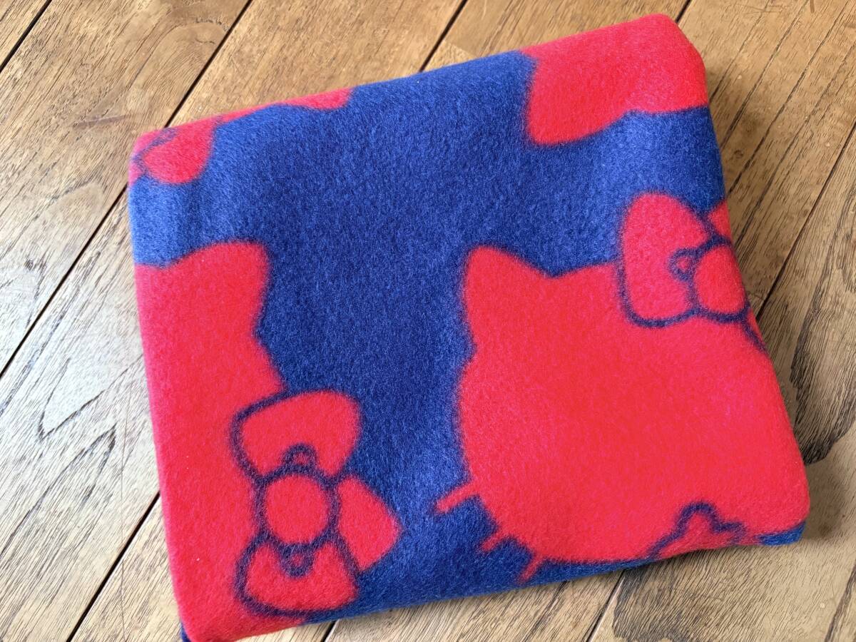 非売品 新品 ハローキティ ブランケット 膝掛け フリース ふわふわ素材 シルエットデザイン 洋服の青山  防寒