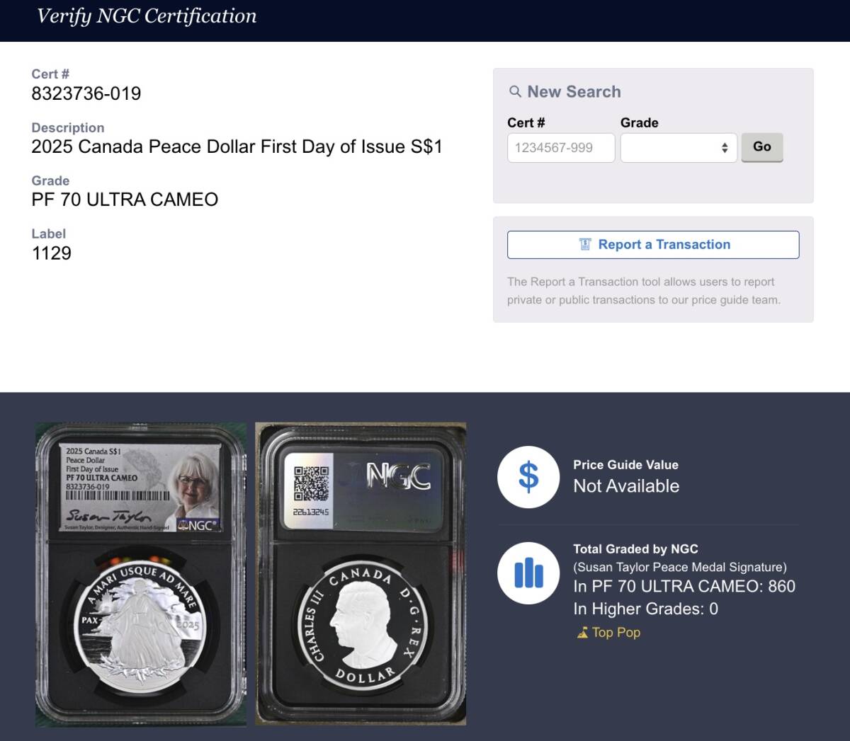 ★最高鑑定 2025 カナダ ピースダラー 1ドル 銀貨 NGC PF70 ULTRA CAMEO ファーストデイオブイシュー 新デザイン モダンコイン