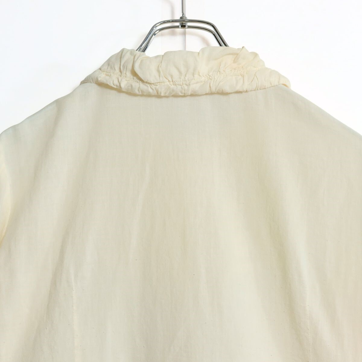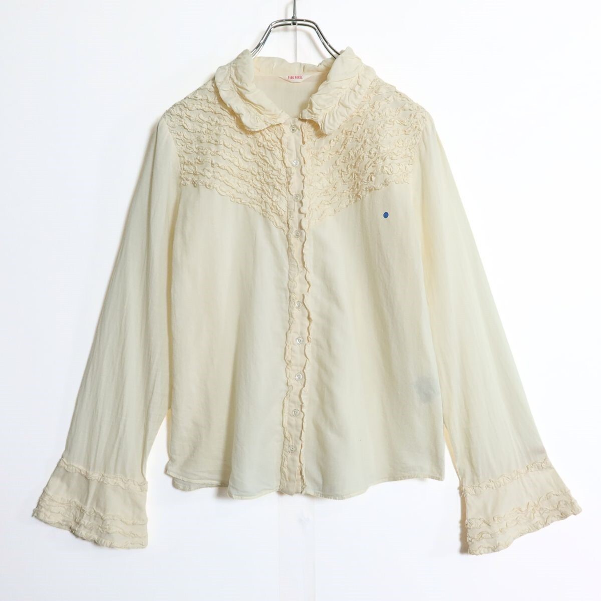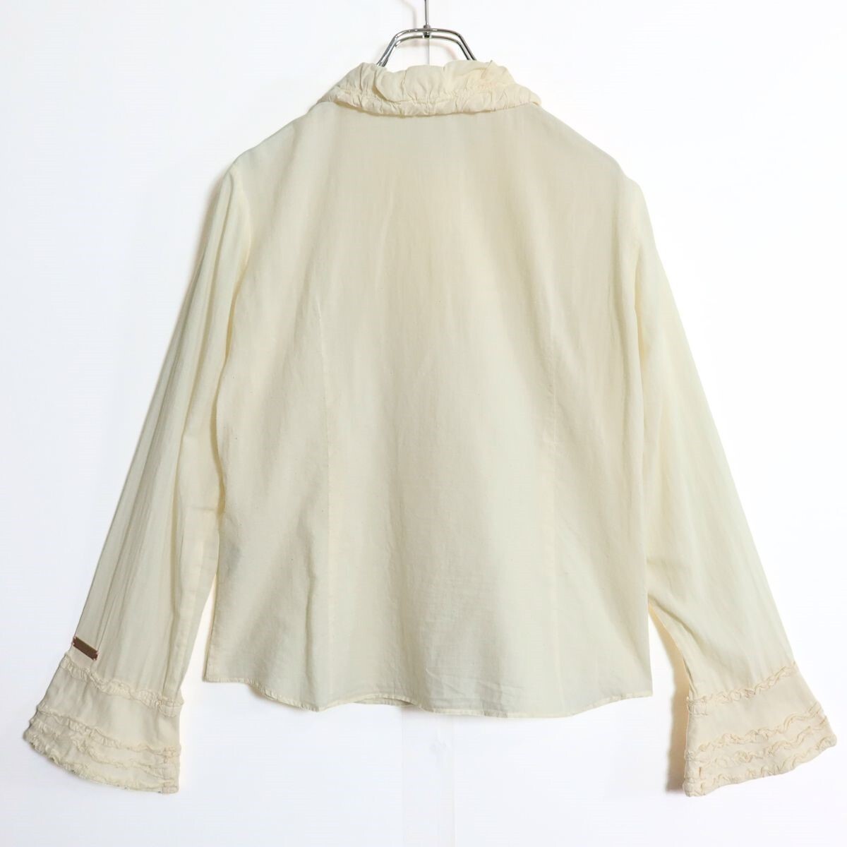 | 商品説明 | 【実寸約】肩幅40袖丈57バスト96着丈56(cm) 【サイズ表記】 L 【素材】 綿100% 【状態】普通の使用感のあるお品物 毛玉感あり 【デザイン】クリームイエロー系 シアー感のある長袖ブラウスです。 薄手/無地・段々フリル付き フロントオープン |