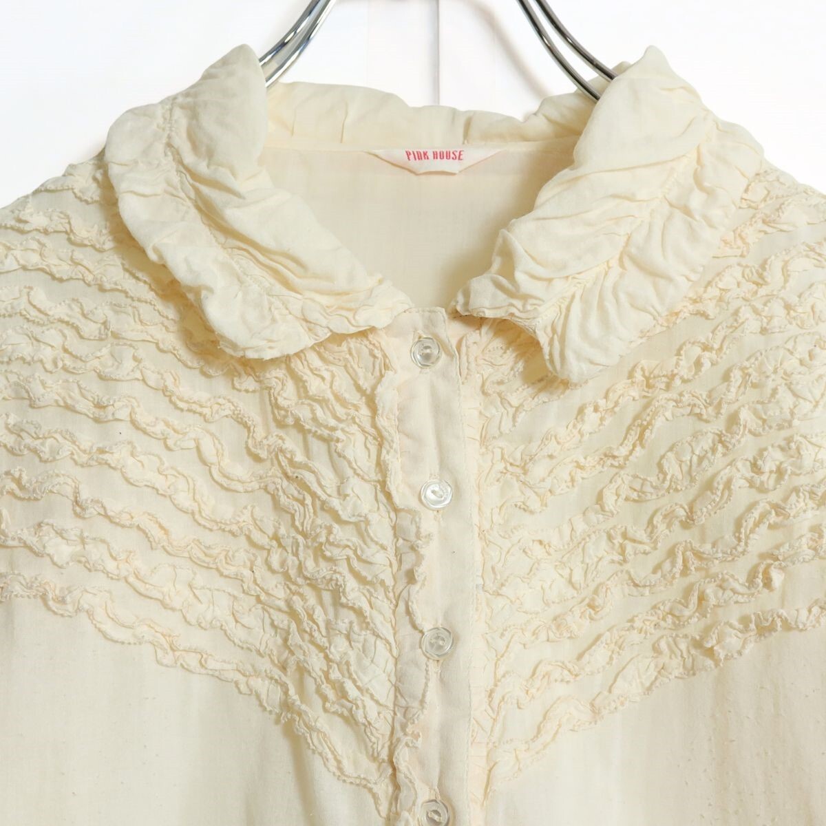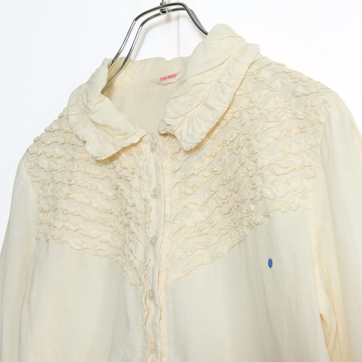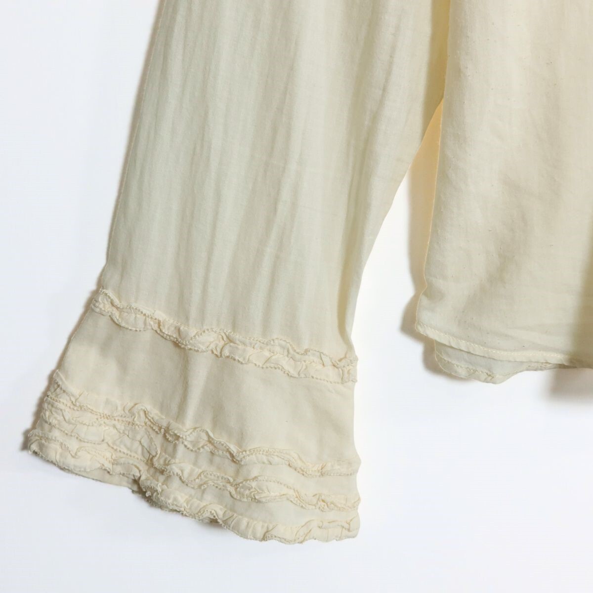 | 商品説明 | 【実寸約】肩幅40袖丈57バスト96着丈56(cm) 【サイズ表記】 L 【素材】 綿100% 【状態】普通の使用感のあるお品物 毛玉感あり 【デザイン】クリームイエロー系 シアー感のある長袖ブラウスです。 薄手/無地・段々フリル付き フロントオープン |
