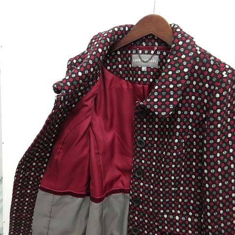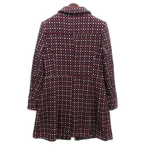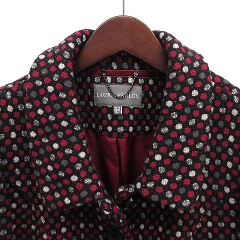 ローラアシュレイ LAURA ASHLEY 総柄 ジャガード ステンカラー コート ウール混 バーガンディ 38 レディース